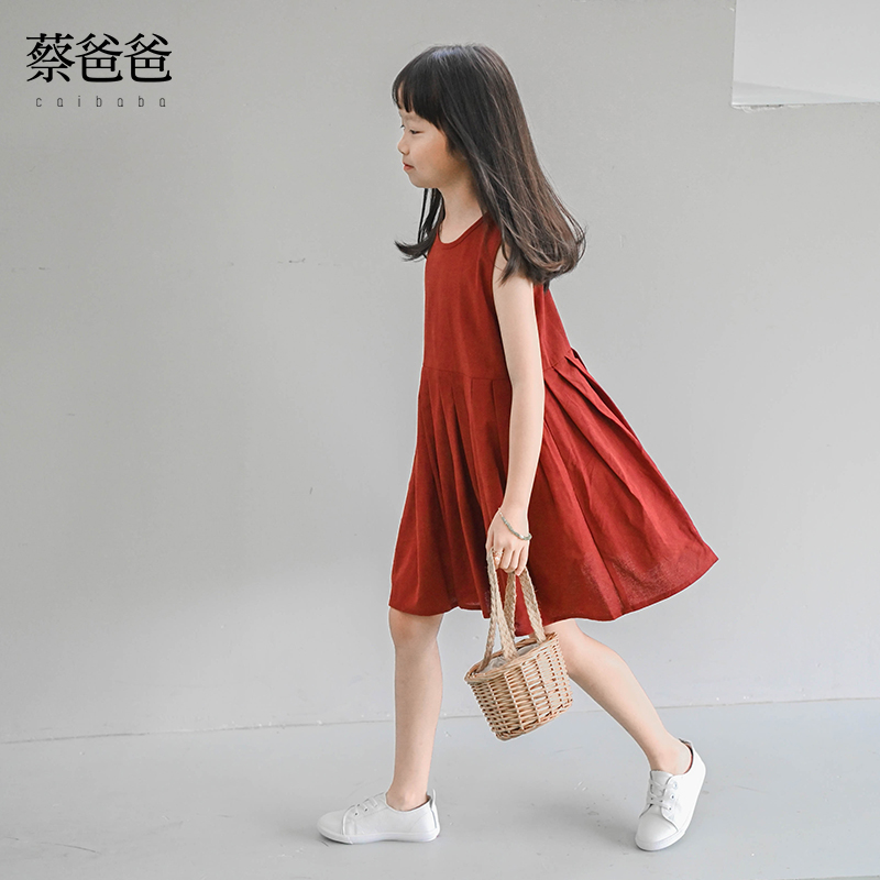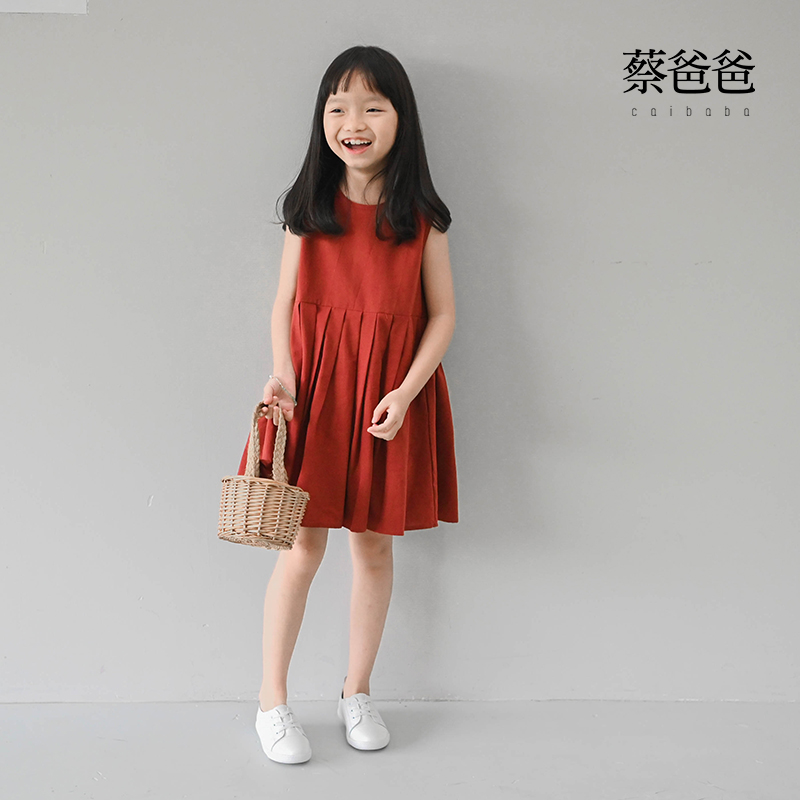 蔡爸爸原创童装 2025夏装女童洋气连衣裙透气背心裙子无袖百褶326