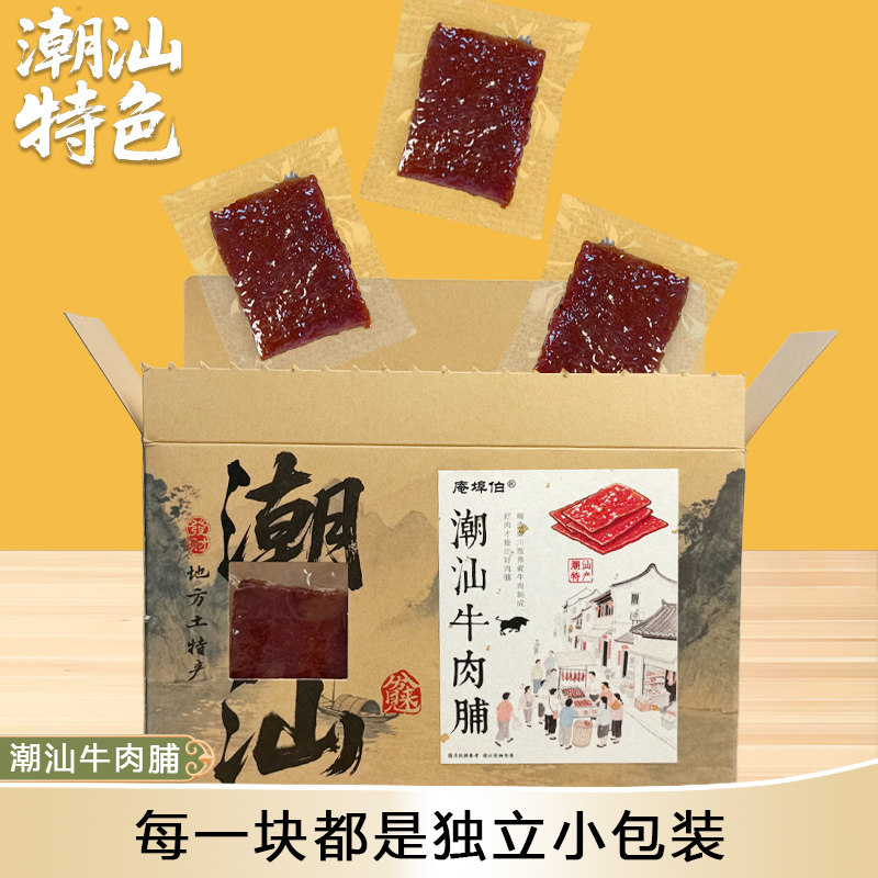 潮汕牛肉脯独立包装特色小吃碳烤牛肉干下午茶办公解馋充饥手信礼