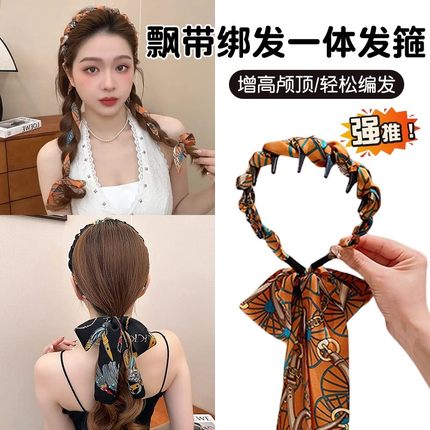 复古编发发箍女2025新款飘带发带绑发丝巾头箍一体系夏季发卡头饰