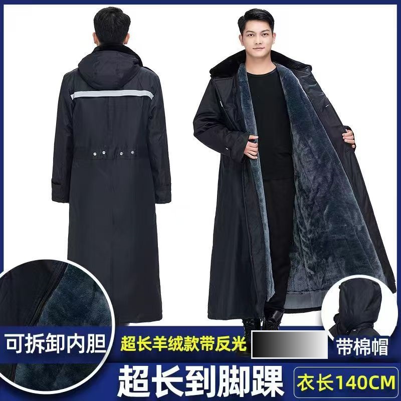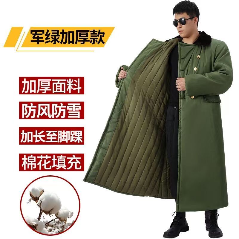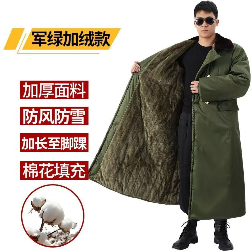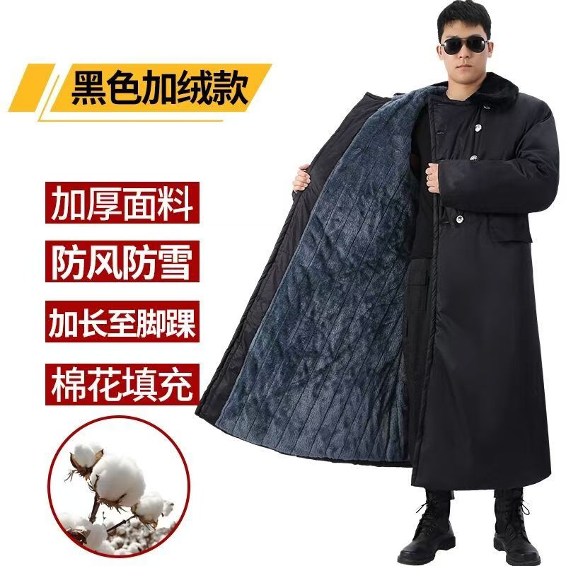 超长军棉大衣男到脚踝冬季加绒加厚东北大衣防寒可拆卸黑色棉服
