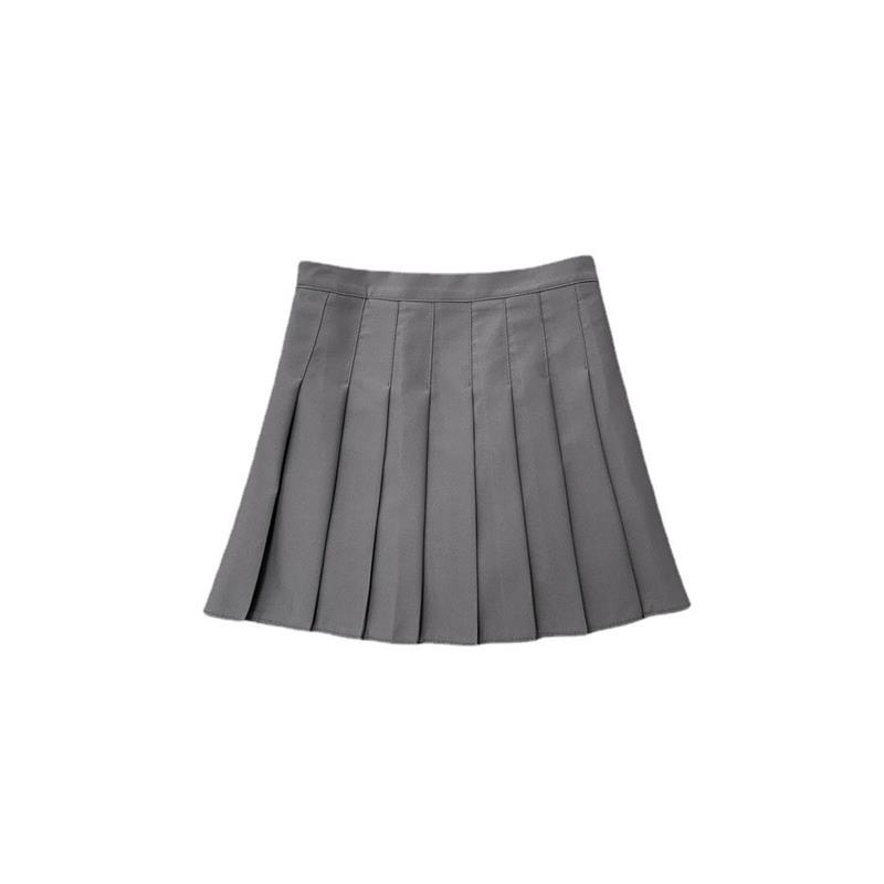春季新款高腰防走光半身裙女百搭百褶裙学院风灰色高腰a字短裙子