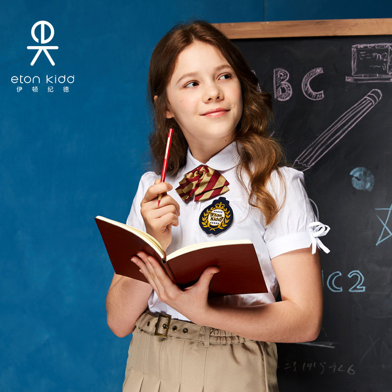 伊顿纪德校服女童学生短袖衬衫儿童白色衬衣24年夏新班服09C226