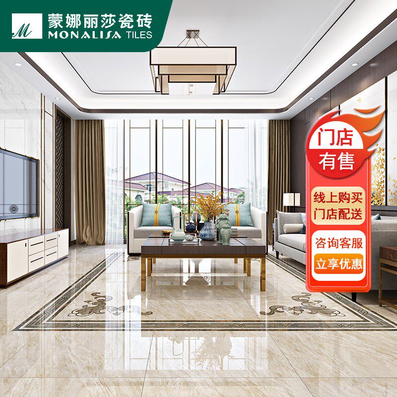 蒙娜丽莎瓷砖地砖客厅止滑通体亮光石纹瓷砖F