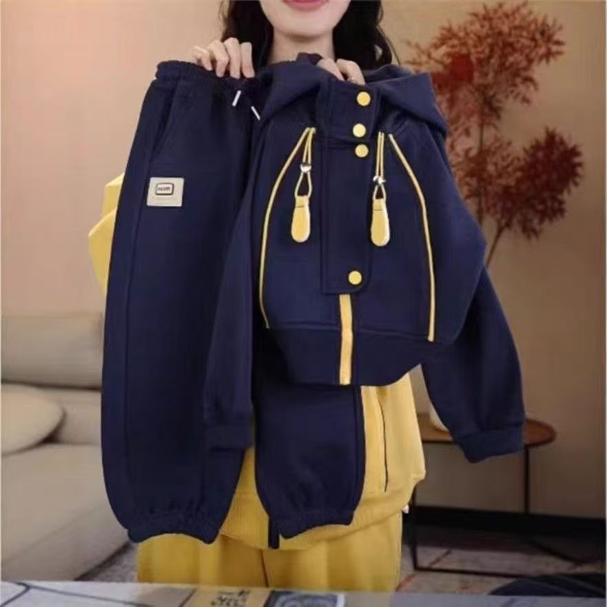 女童套装春秋季2025新款洋气运动休闲韩版时髦炸街女孩连帽两件套