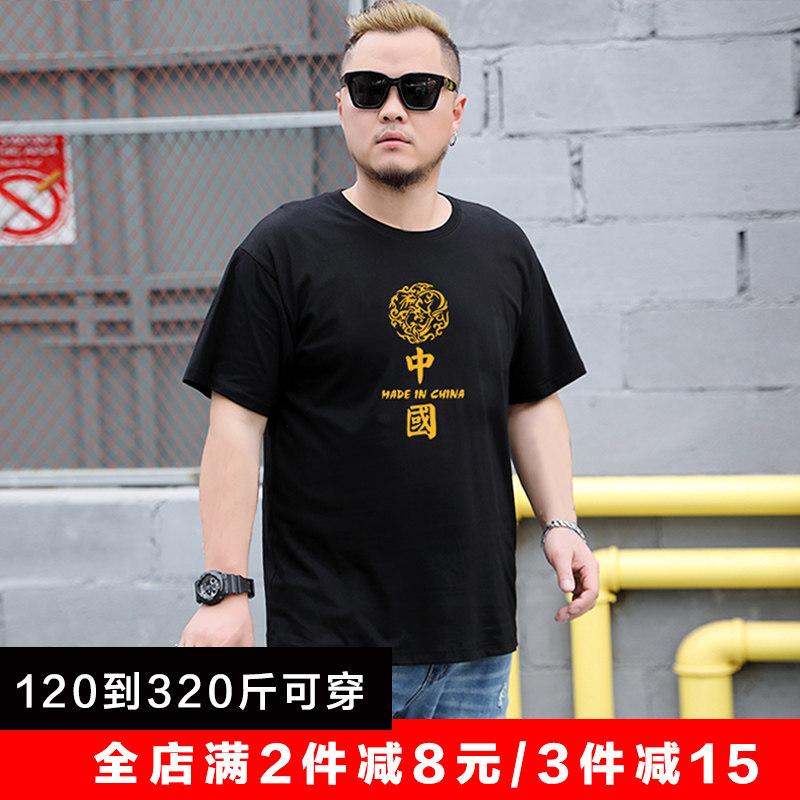 夏季纯棉男士t恤短袖加大码宽松运动胖子潮肥佬大号半袖汗衫休闲T
