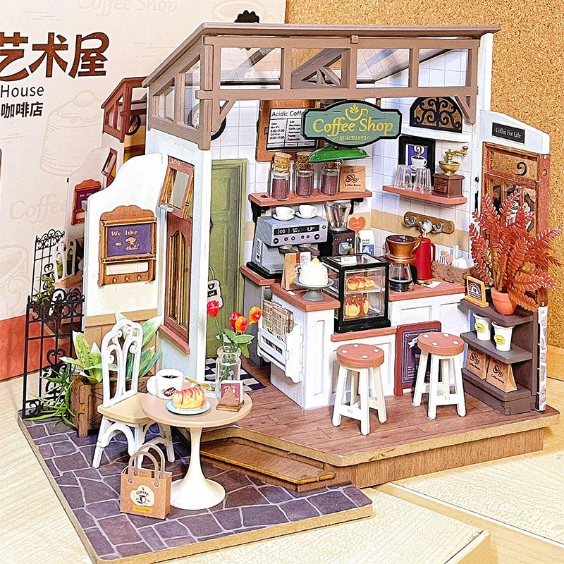 若来咖啡店diy小屋贝卡面包店手工房子木质拼装模型别墅积木礼物