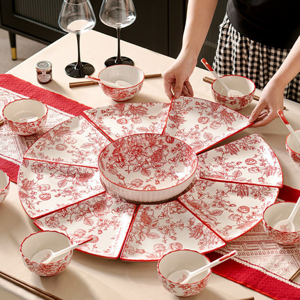 玫瑰喜庆红拼盘餐具组合家用团圆过年聚餐碗筷盘套装2026新款结婚