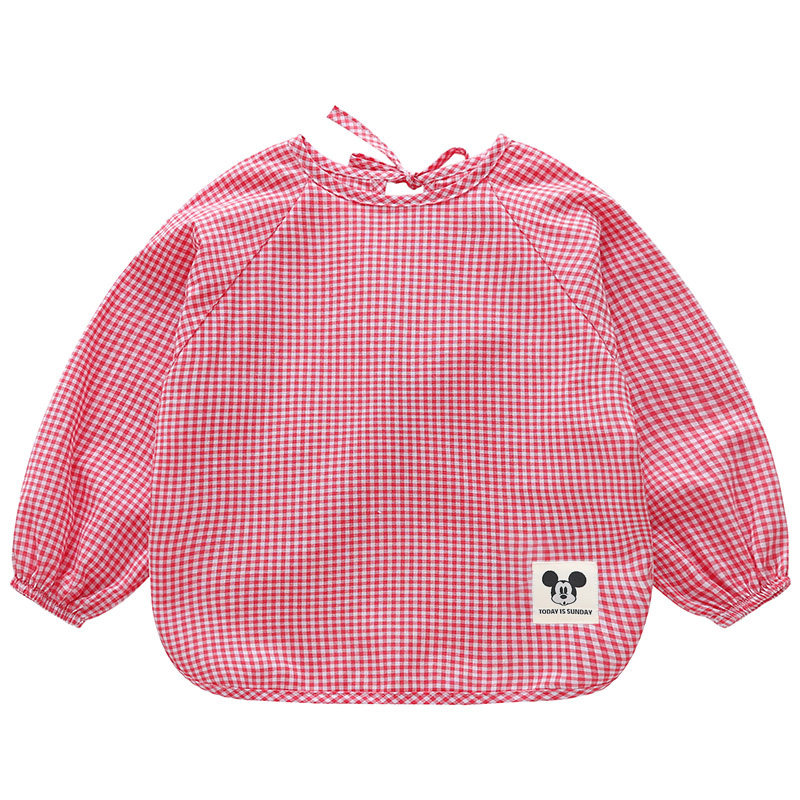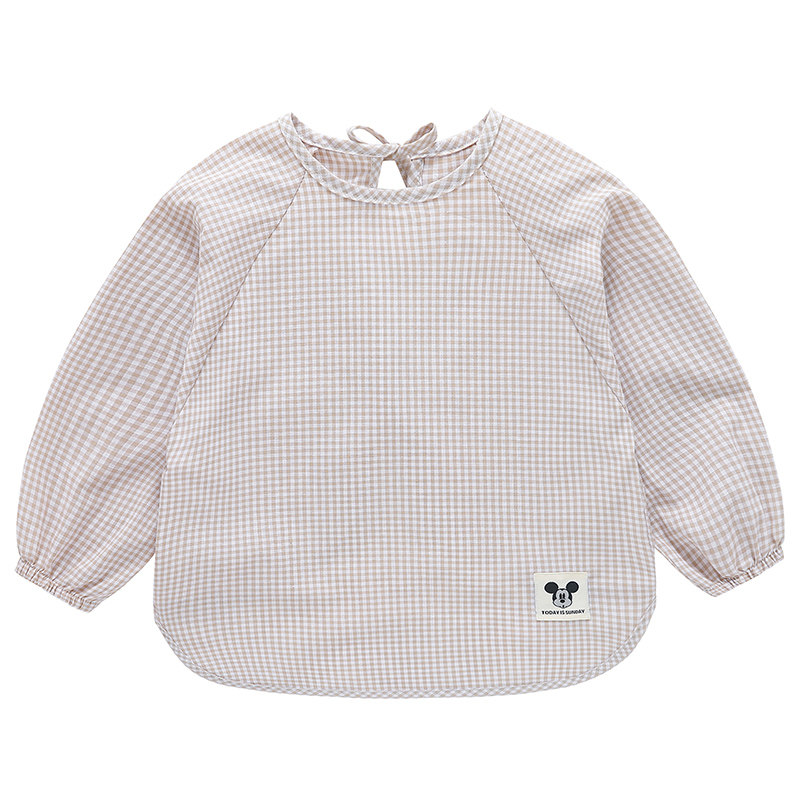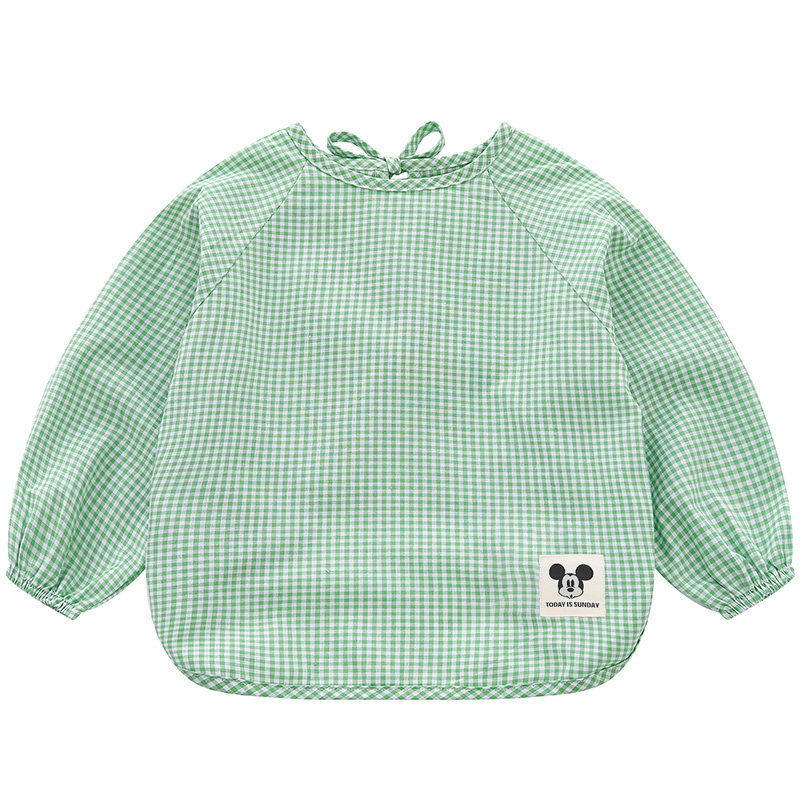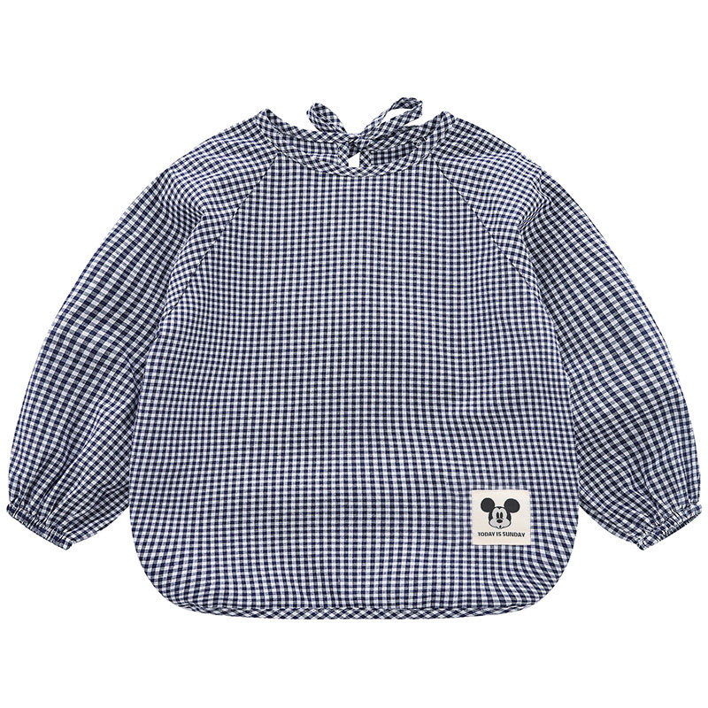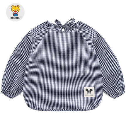 纯棉薄款格子宝宝罩衣儿童长袖防水反穿衣婴儿防脏男女幼儿园围裙