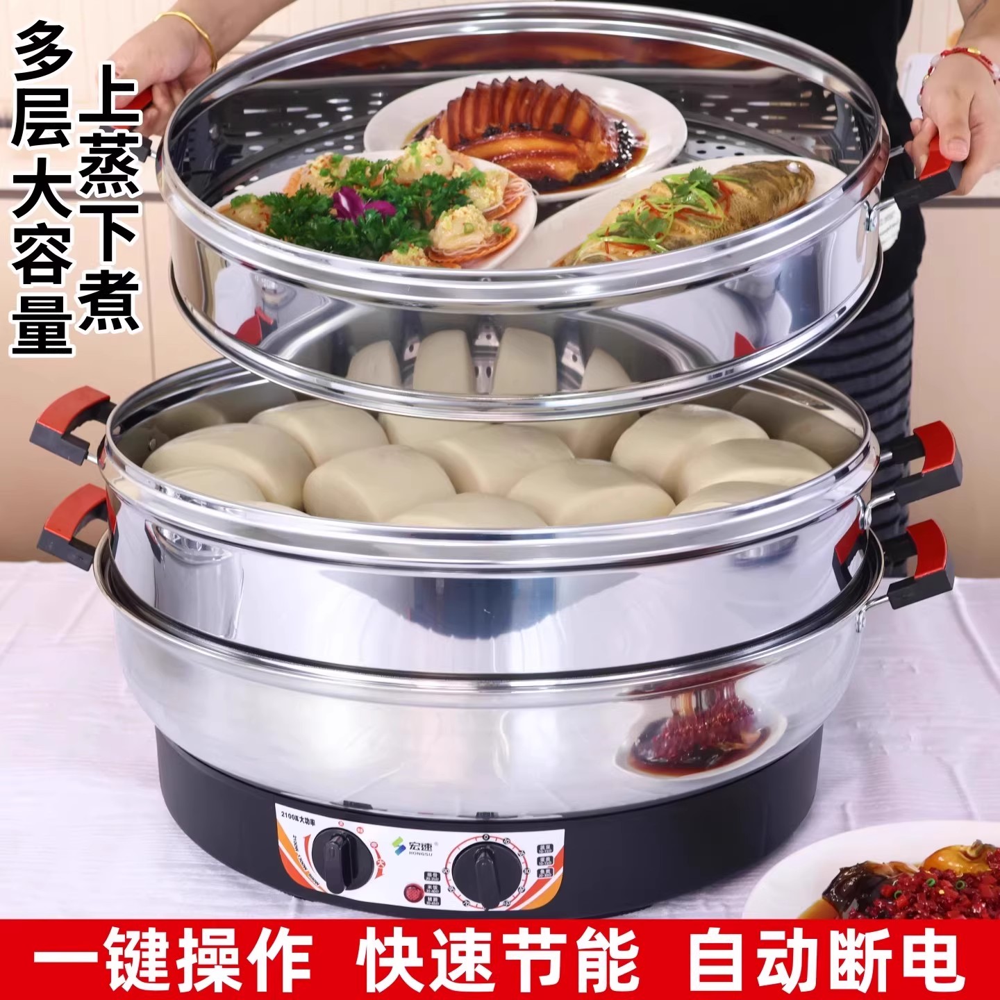 超大号电蒸锅商用插电蒸笼大容量不锈钢多功能防干烧家用三层蒸菜