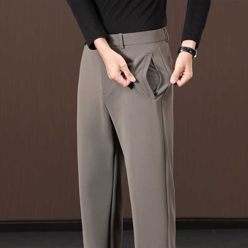 (高端锦纶)秋季商务男士休闲西裤四面弹宽松直筒百搭中年爸爸男裤