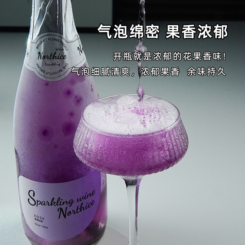 紫提玫瑰莫斯卡托女士微醺气泡酒荔枝果酒女起泡酒鸡尾酒香槟酒塞
