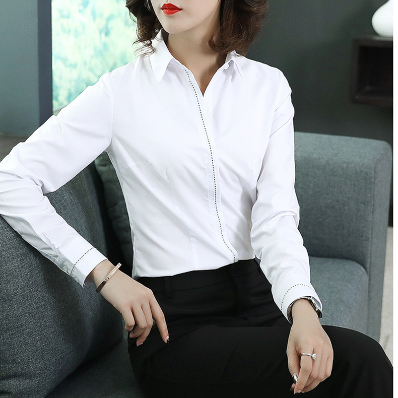 加绒黑衬衫女长袖加厚冬季修身内搭职业正装打底保暖方领女款衬衣