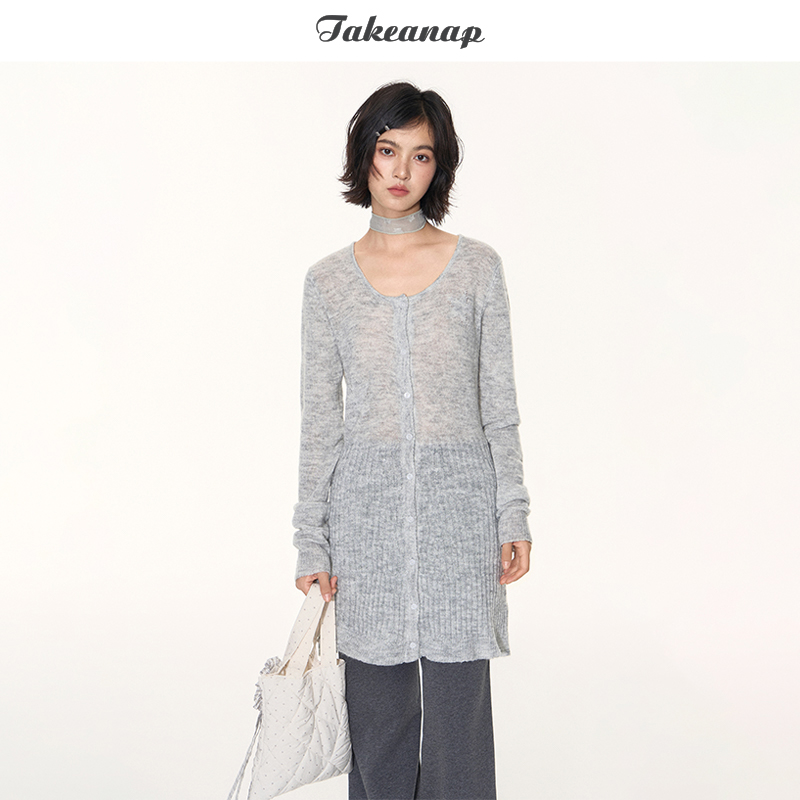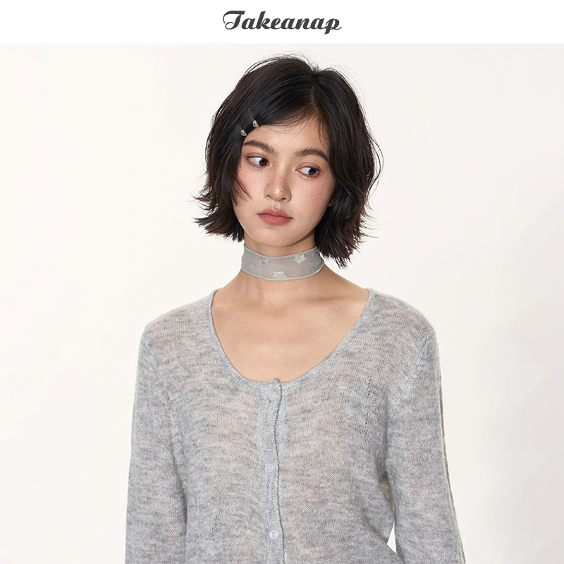 TAKEANAP午睡 原创星星提花针织开衫连衣裙女圆领修身显瘦上衣薄