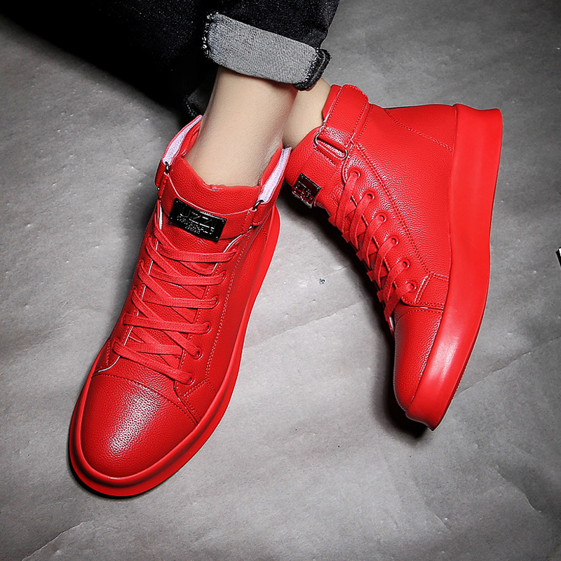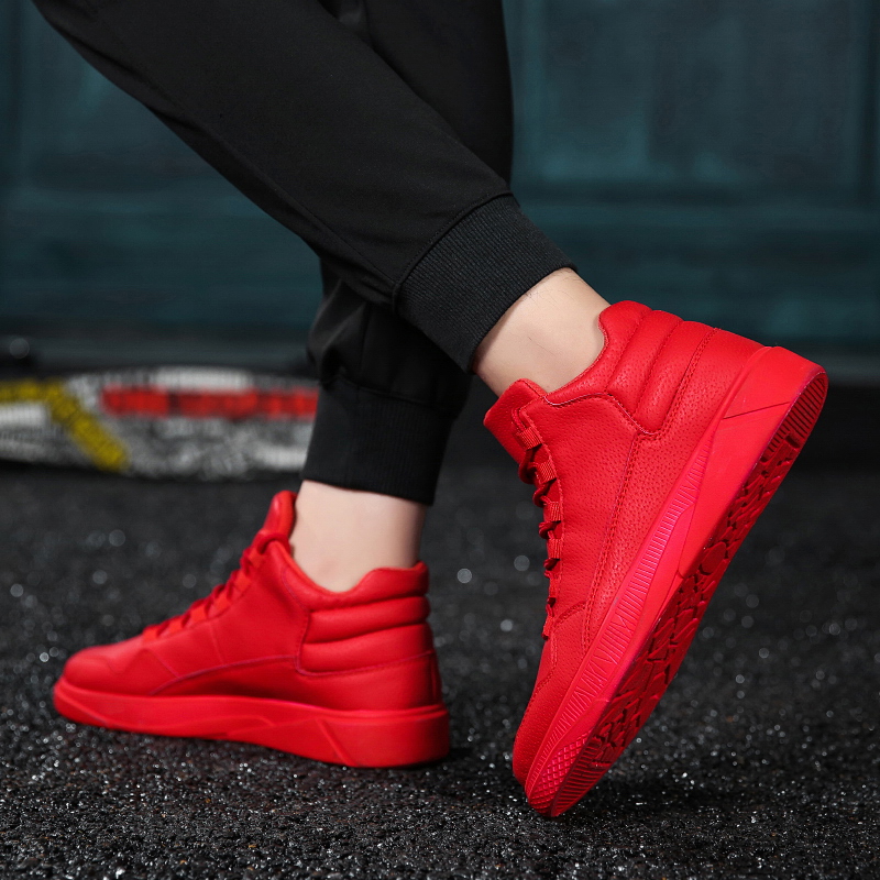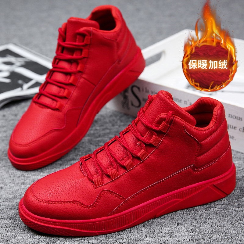 男鞋2024春季大红色板鞋高帮网红鞋运动韩版潮社会精神小伙休闲鞋