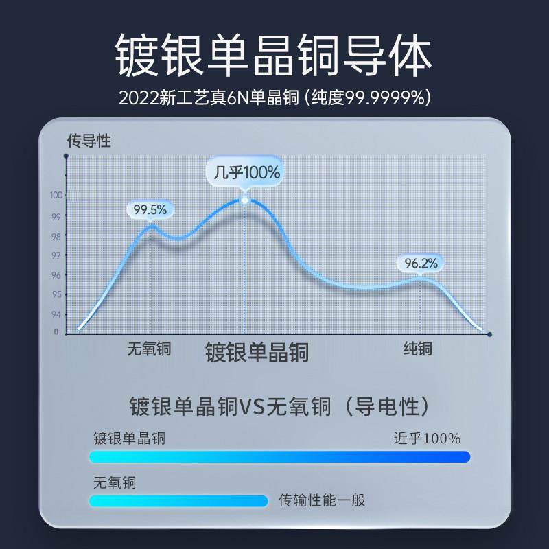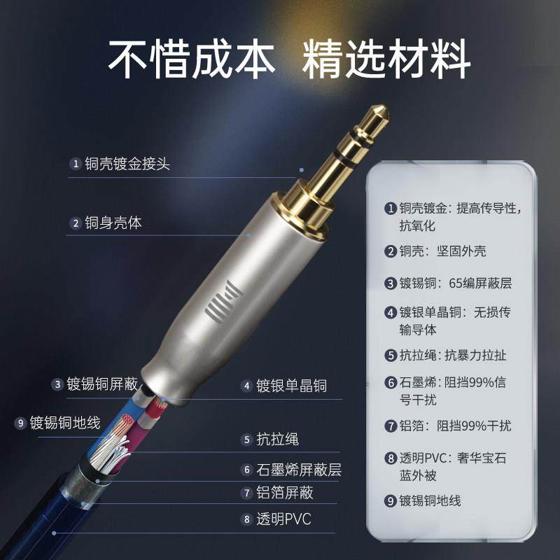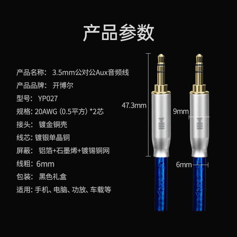 开博尔aux音频线3.5mm公对公6N单晶铜镀银线芯车载双头音频连接线