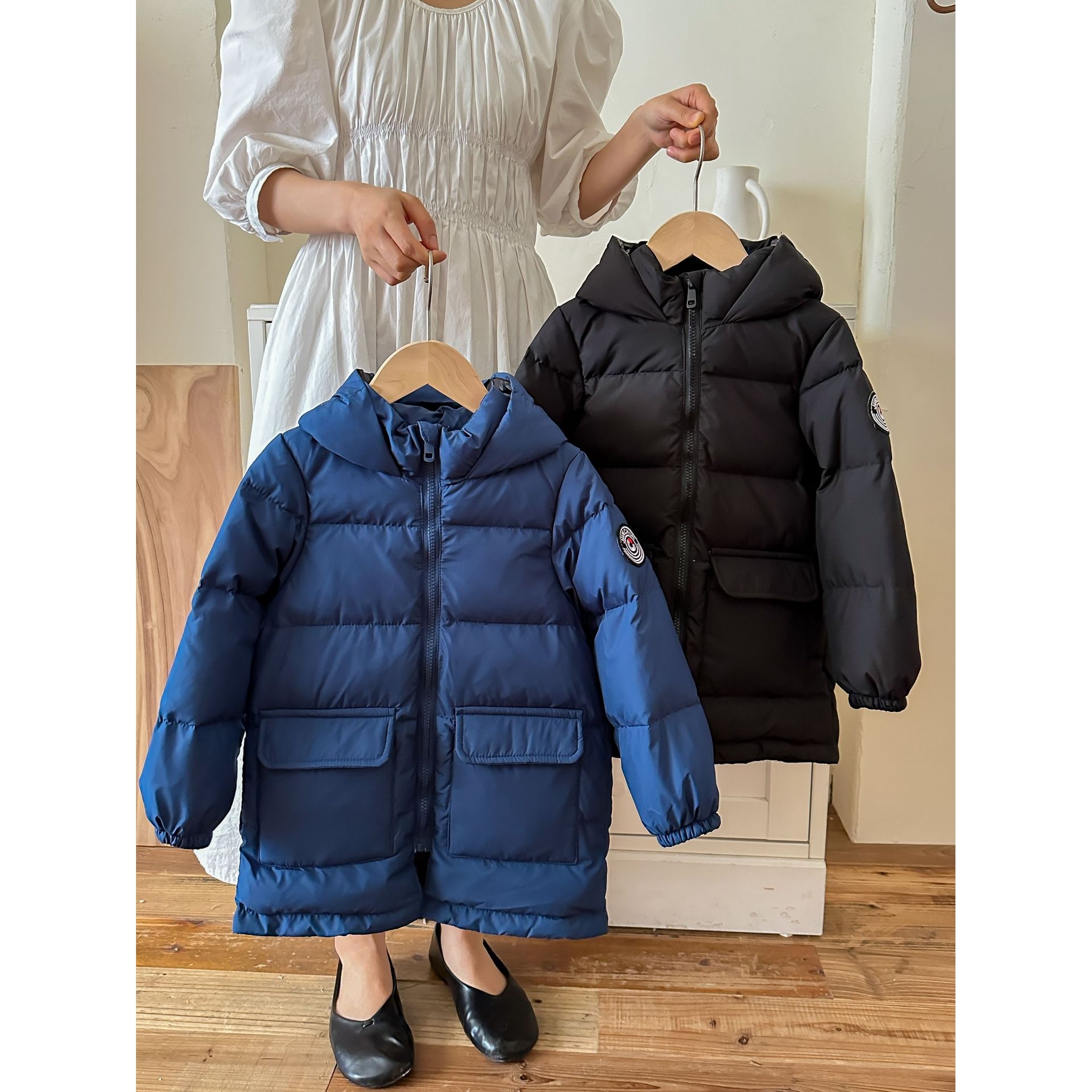官网正品俊淳新款黑金儿童羽绒服加厚中长款男女童宝白鸭绒冬装连