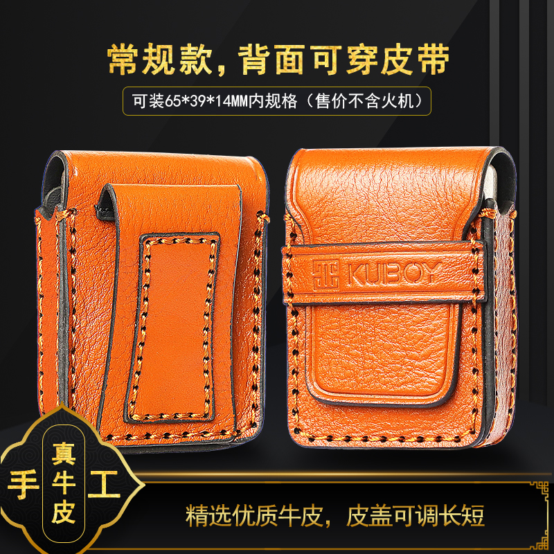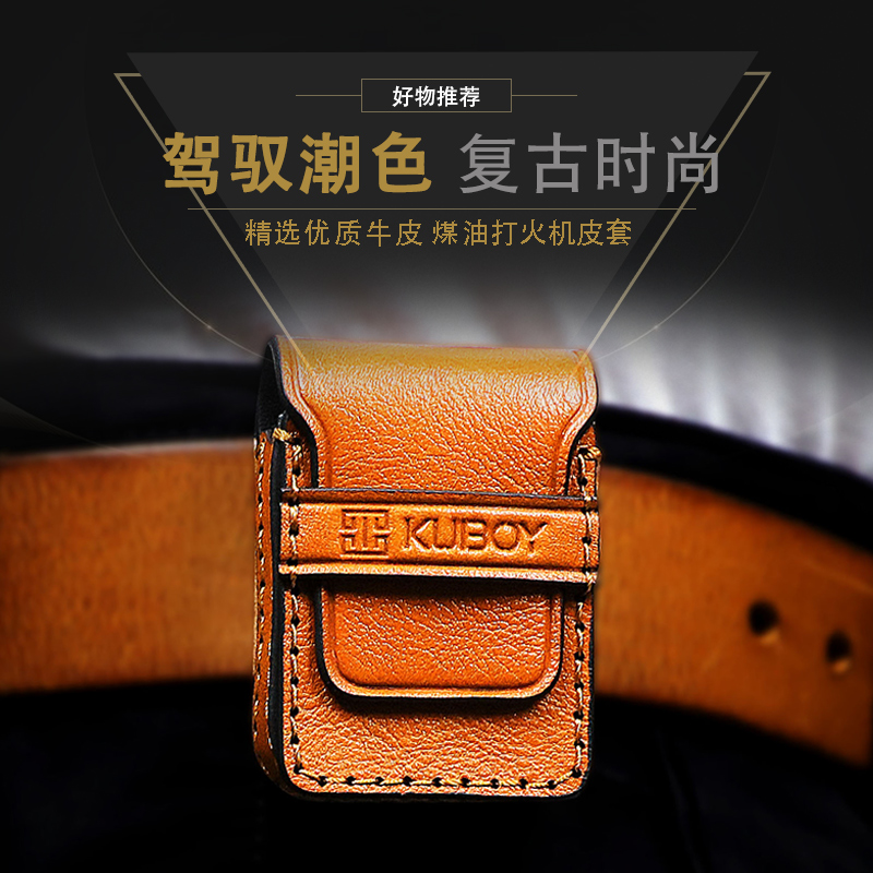高档牛皮煤油打火机皮套手工复古男士大号重型盔甲火机保护套腰包