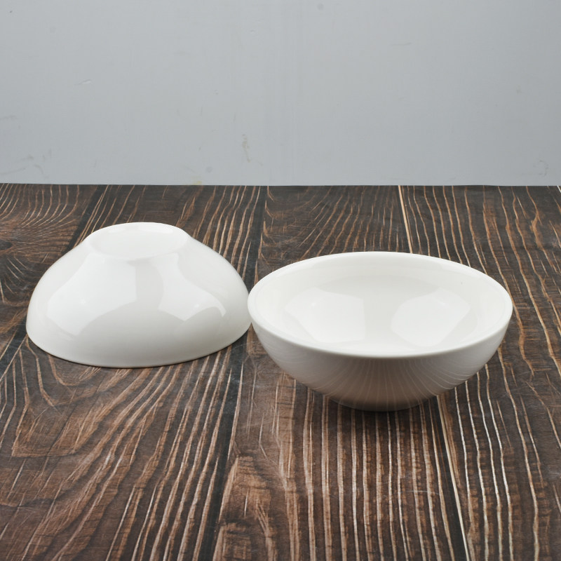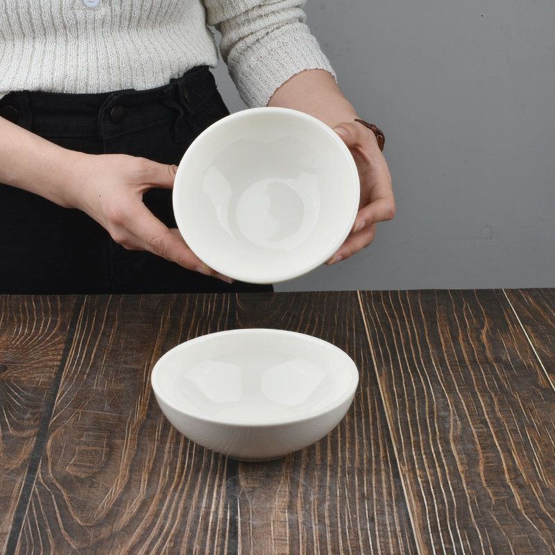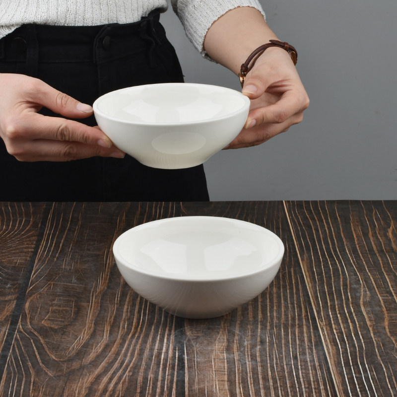 德化白瓷家用简约米饭碗宽口吃面碗5.7英寸早餐燕麦碗400毫升蒸碗