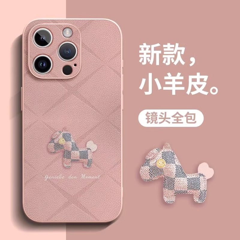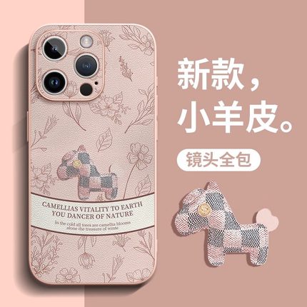 适用苹果16手机壳新款iphone金属漆17promax小羊皮7/6s复古小马8plus高级感x小众创意14Pro全包13防摔12外壳