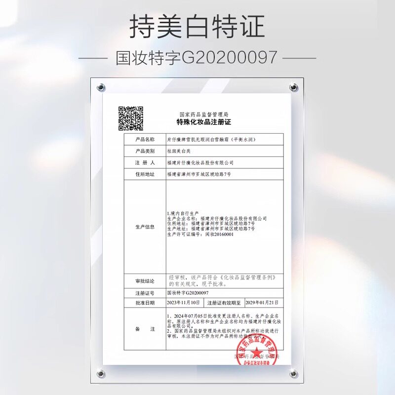 片仔癀牌雪肌无瑕润白雪融平衡水润美白补水面霜改善暗沉淡化暗沉