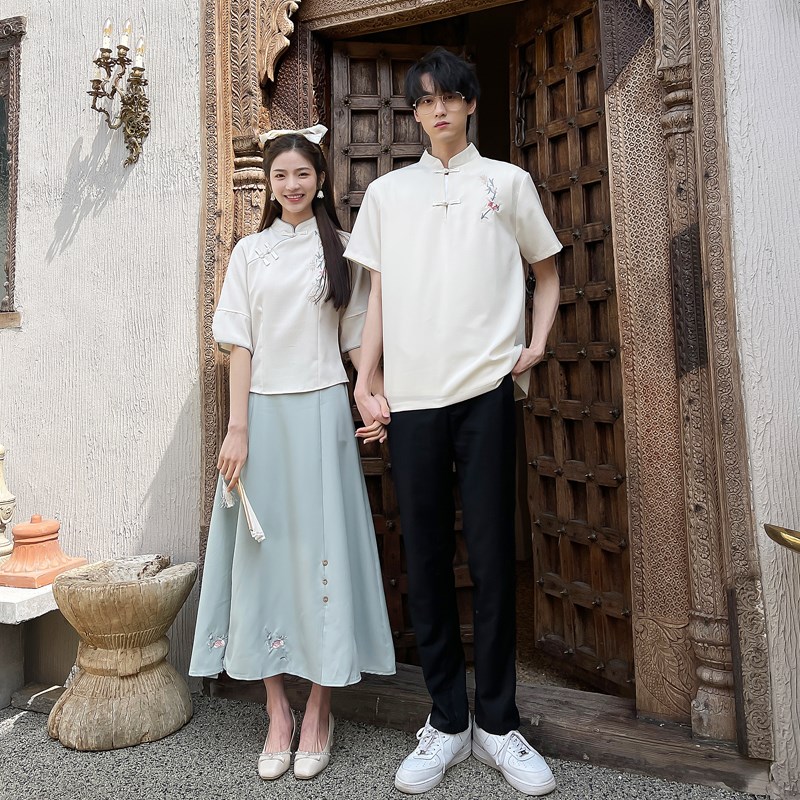 汉服情侣装夏装民国风旗袍套装学生比赛演出班服高中生毕业照长裙