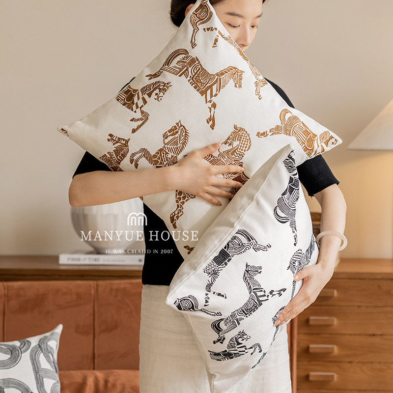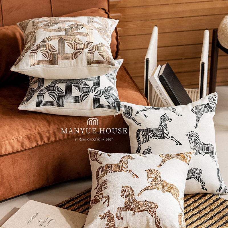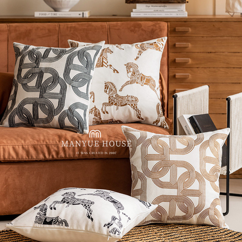 蔓越家 复古几何刺绣绣花抱枕北欧沙发抱枕套样板间床头靠垫含芯