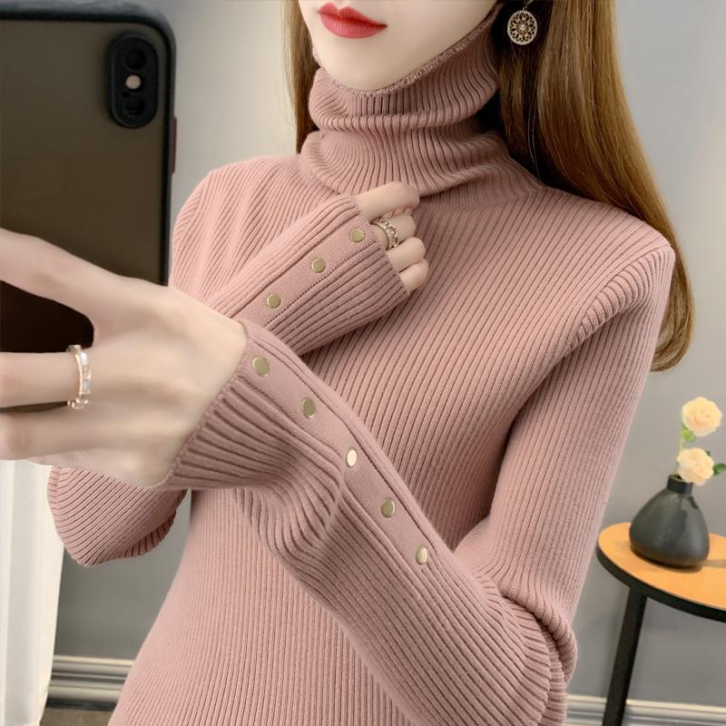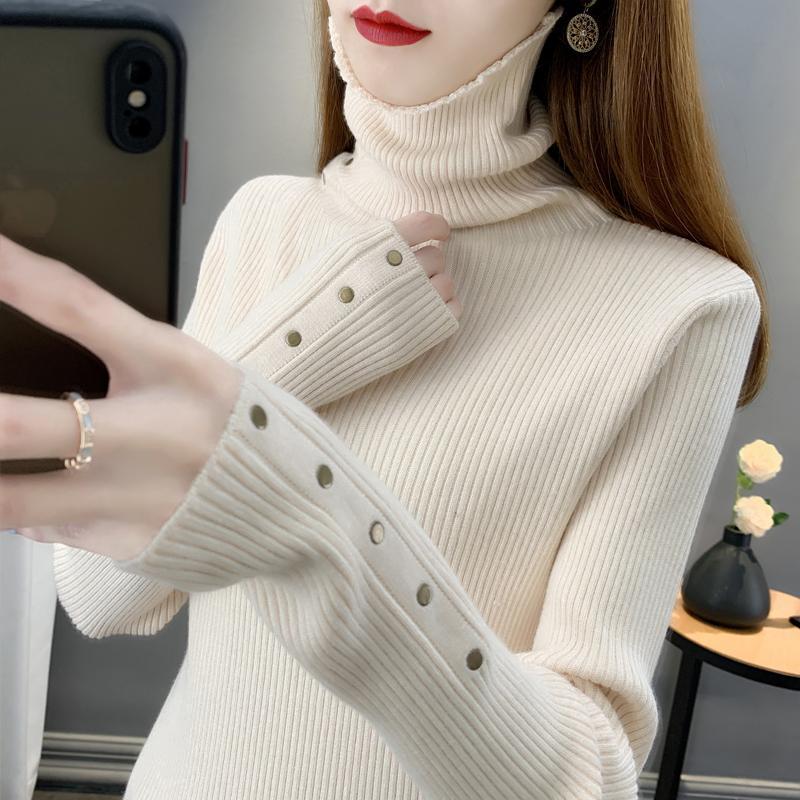 高领毛衣女加厚堆堆领打底衫2023秋冬新款套头翻领针织衫内搭上衣