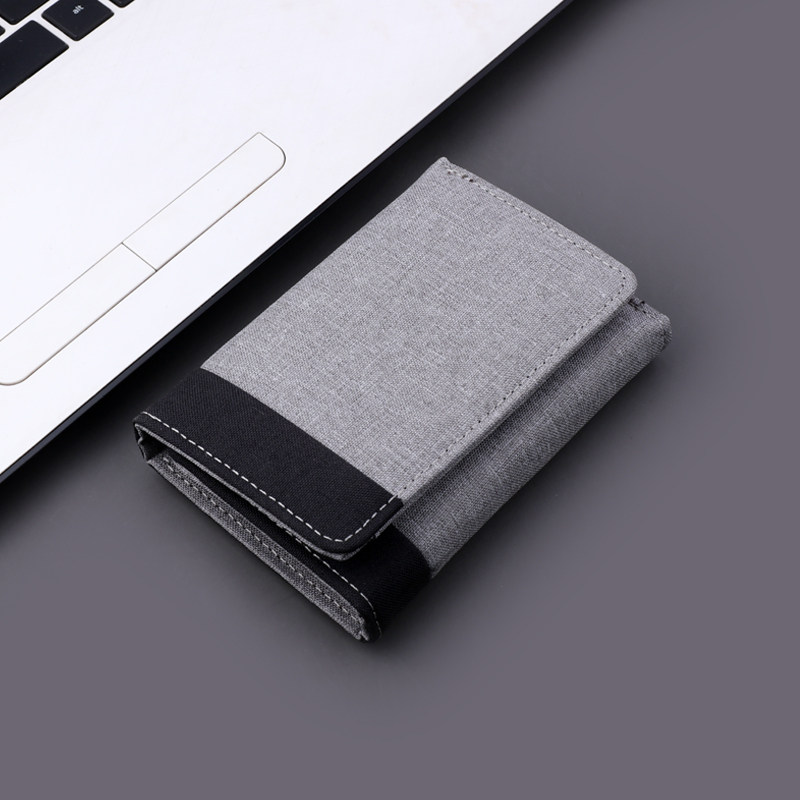 三折帆布钱包男学生短款小皮夹证件卡包多卡位竖款年轻人轻薄钱夹