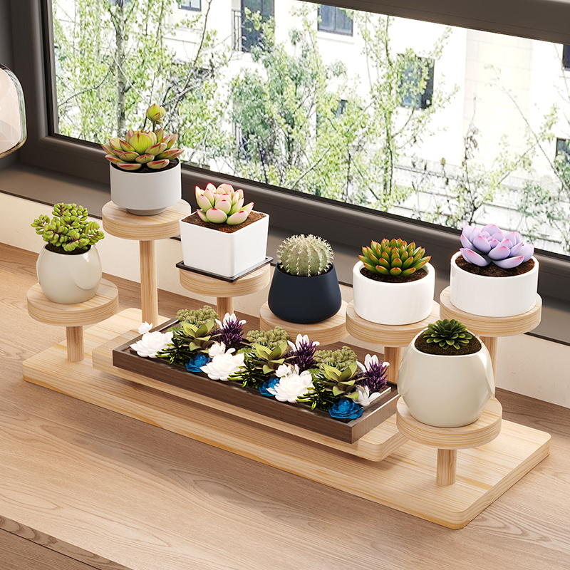 实木桌面置物架办公书桌多层收纳美工区化妆品小摆件展示整理花架