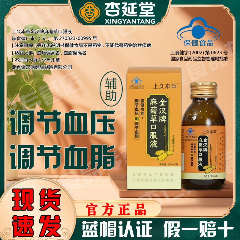 上久本草金汉牌麻菊草口服液辅助中老年人调压调脂100ml假一罚十