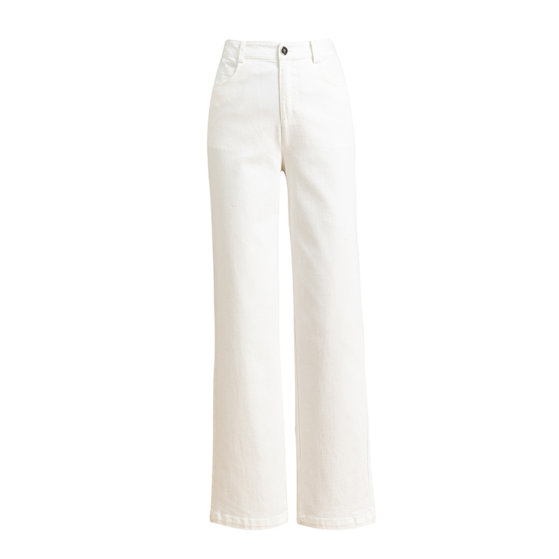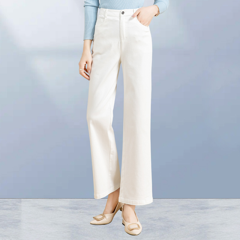 白色阔腿裤女牛仔2025年新款春夏九分直筒宽松高腰大码小个子裤子