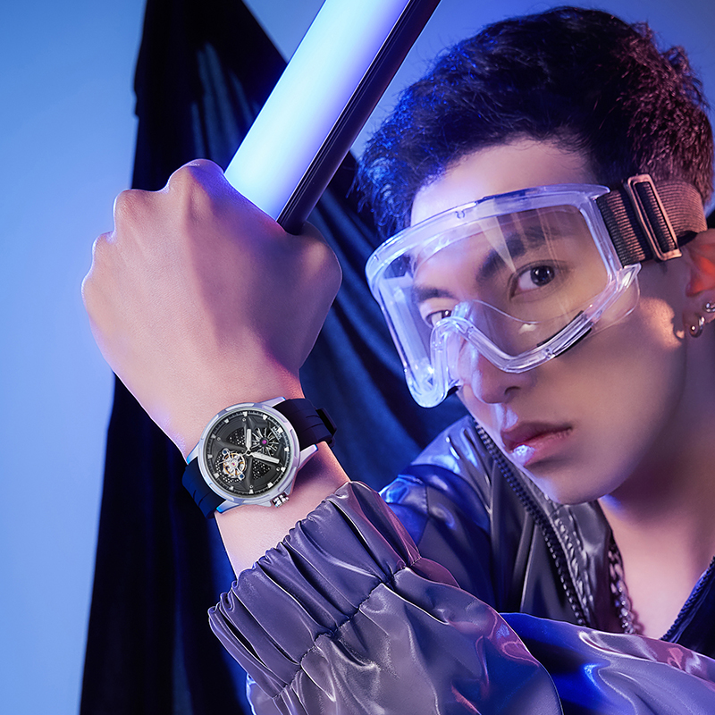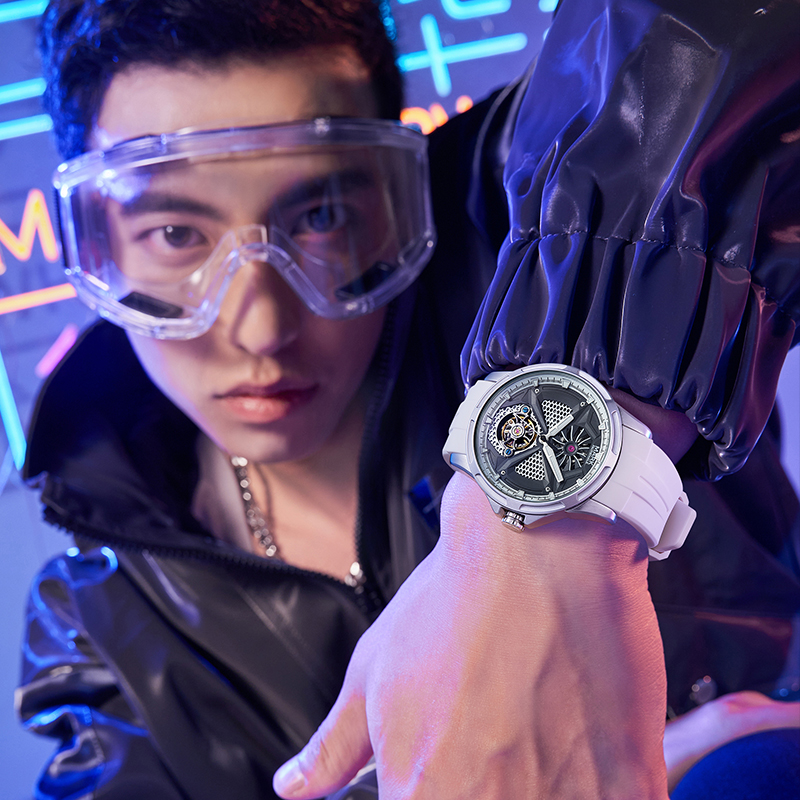 马克华菲新款手表男款镂空陀飞轮手表男机械表夜光黑科技双镂空