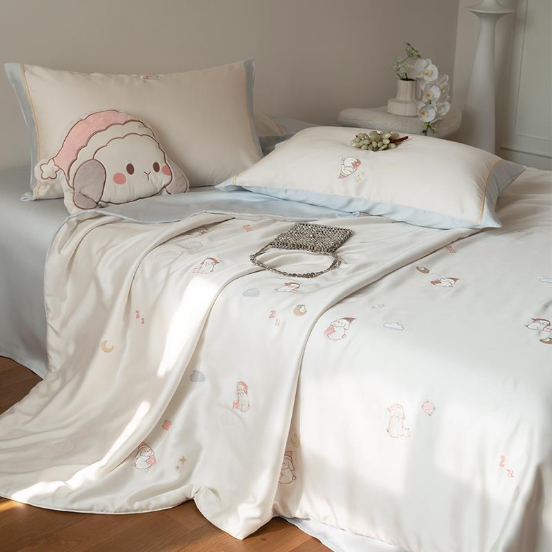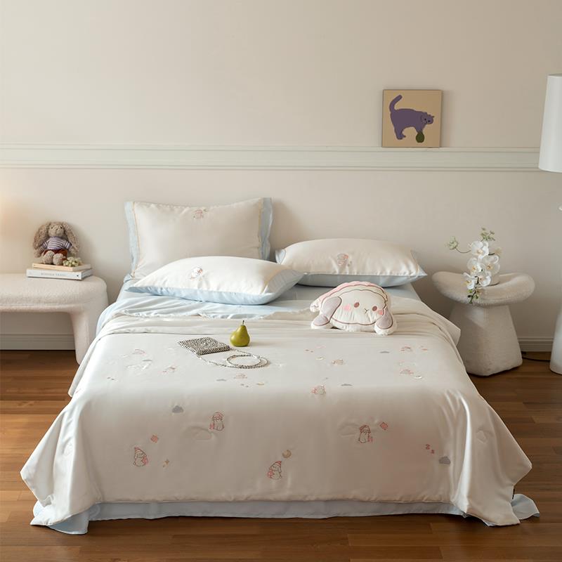 晚安兔卡通空调被夏季天丝夏凉被四件套凉感冰丝裸睡薄被子可机洗