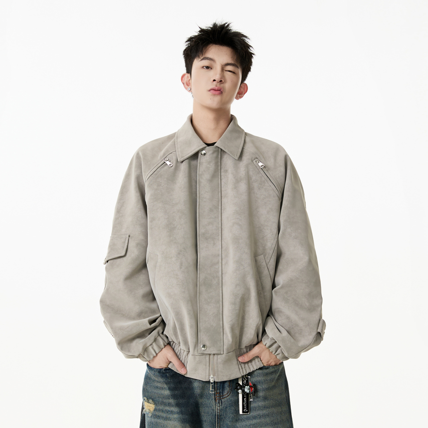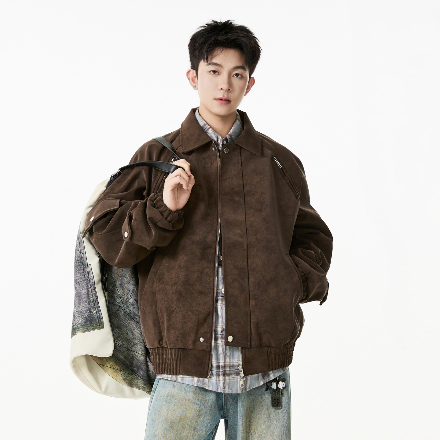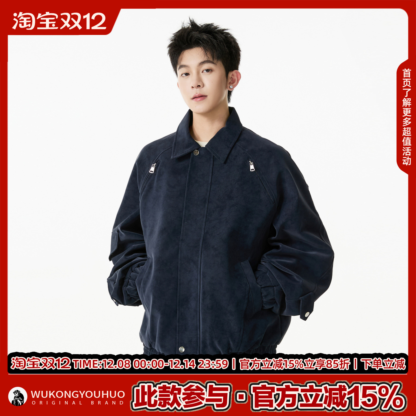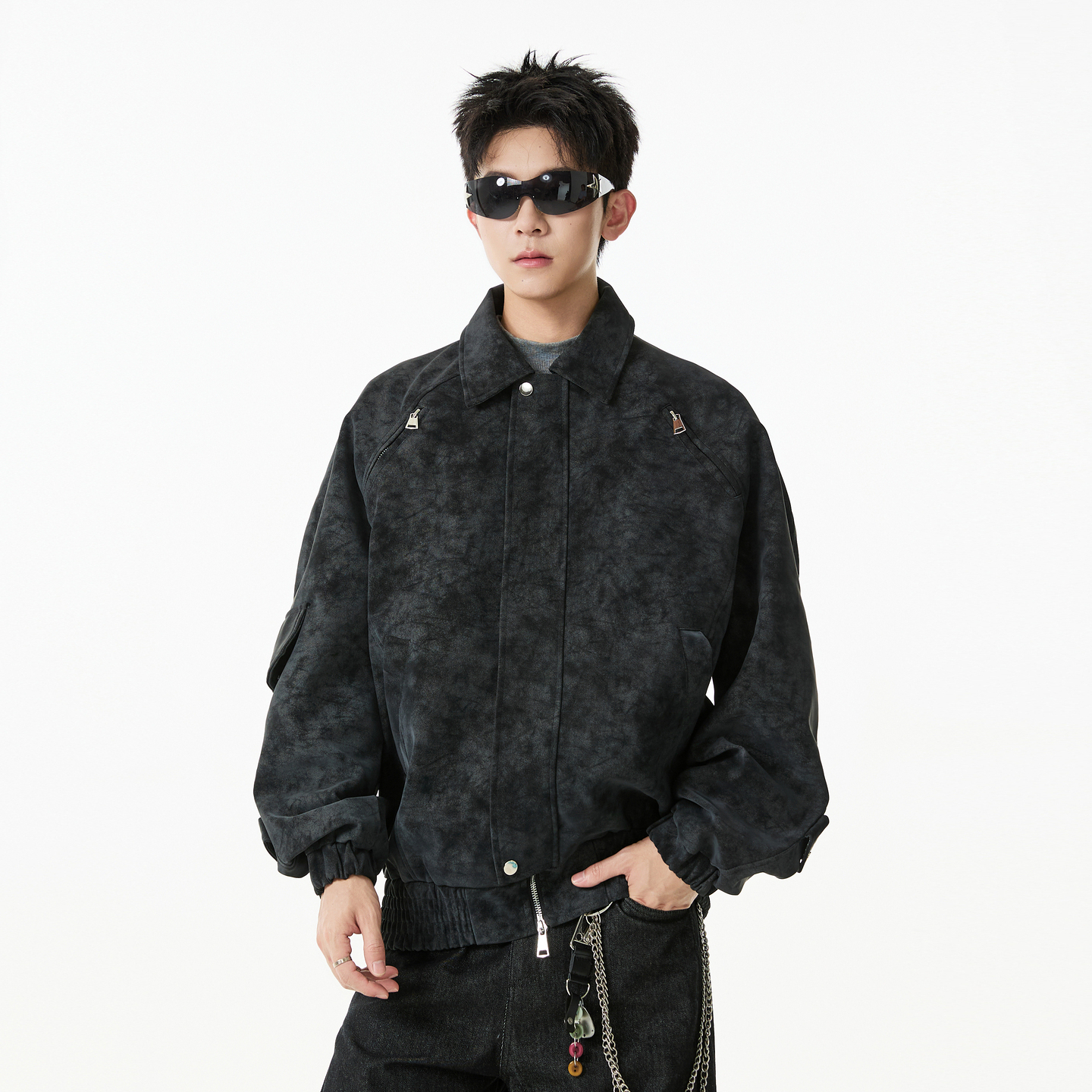 悟空有货美式高街扎染皮上衣夹克男潮牌痞帅拉链设计感机车服外套