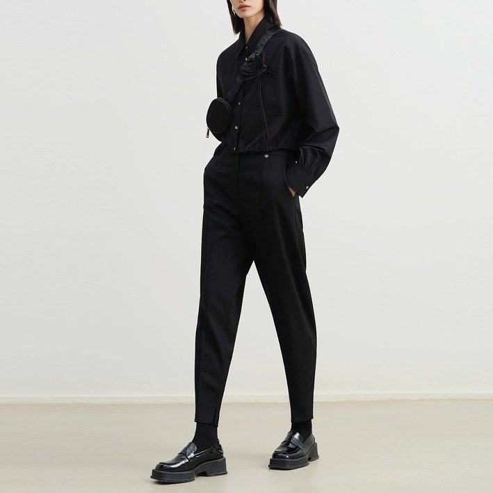 艺之卉商场同款墨黑色经典时尚西装裤 修身小腿裤 2025秋新款