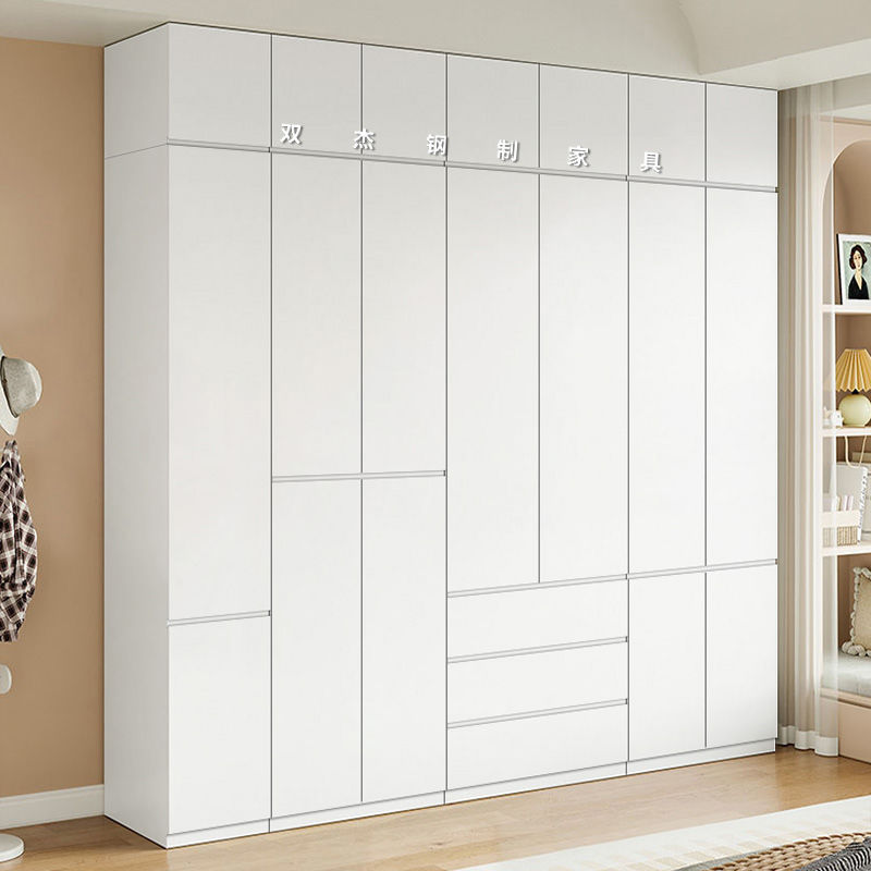 高端家用新款金属钢制衣柜卧室组合柜子储物带抽屉简约大容量衣橱