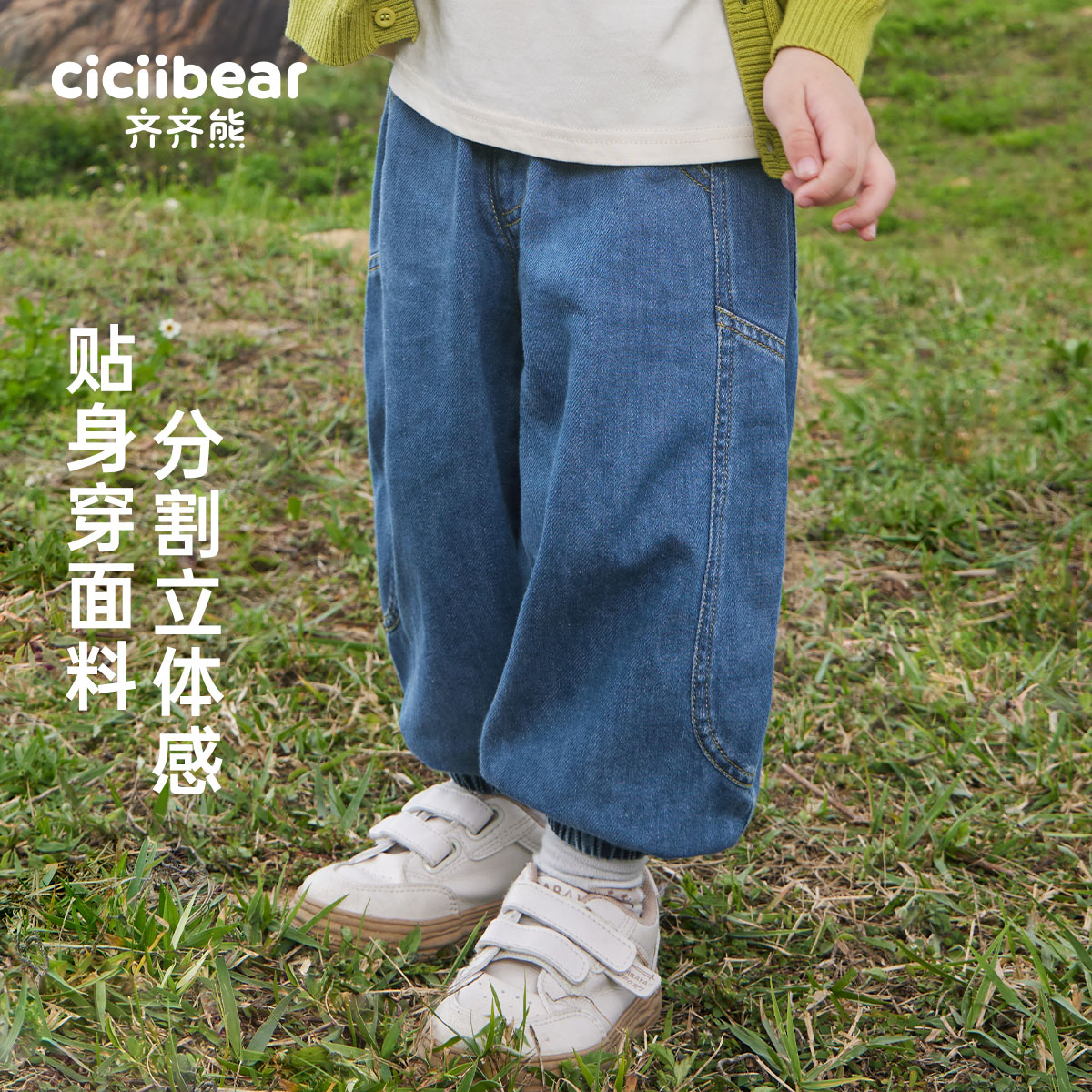 [防褪色]齐齐熊男童软牛仔裤春秋款2025新款休闲裤男宝宝裤子儿童