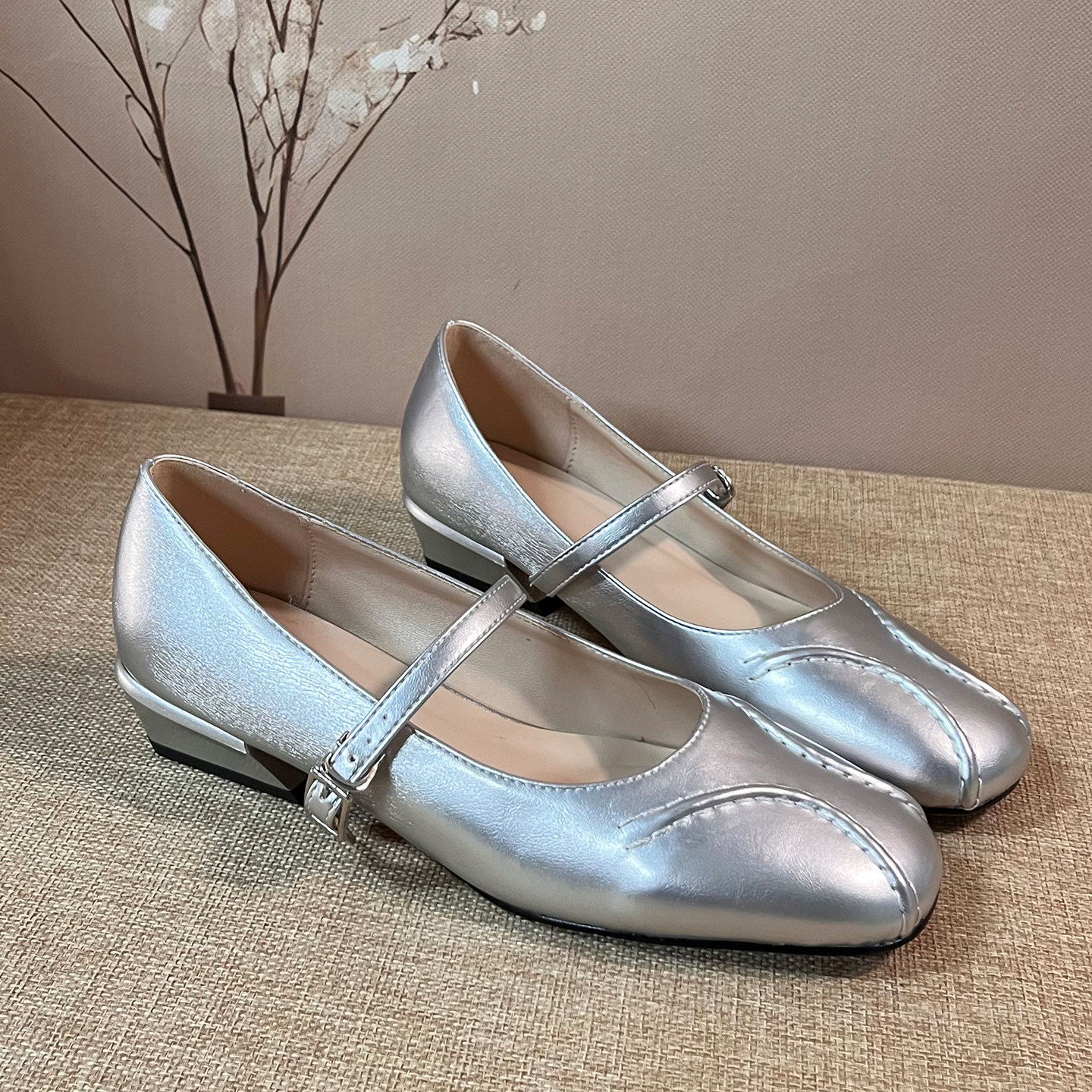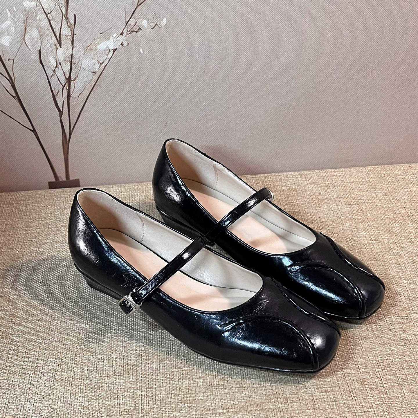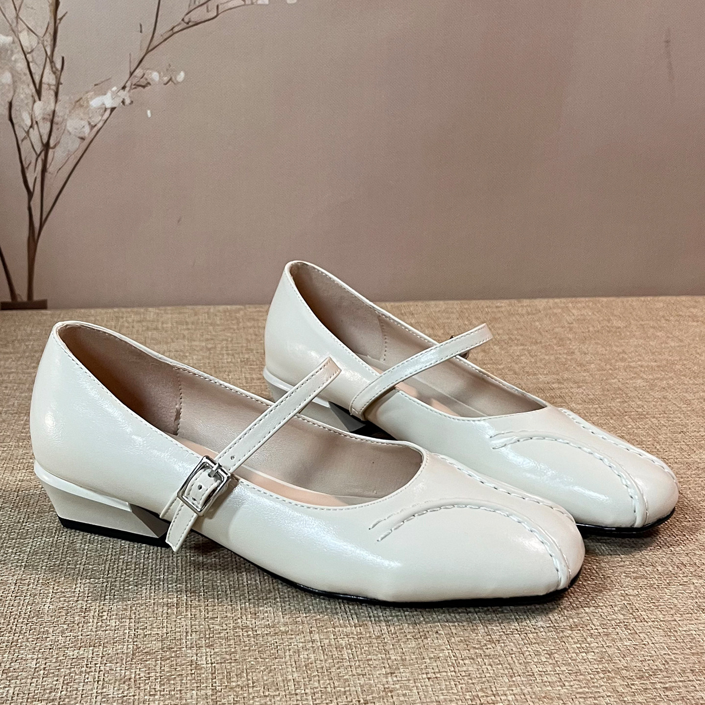 轻熟风方头玛丽珍鞋低跟浅口单鞋