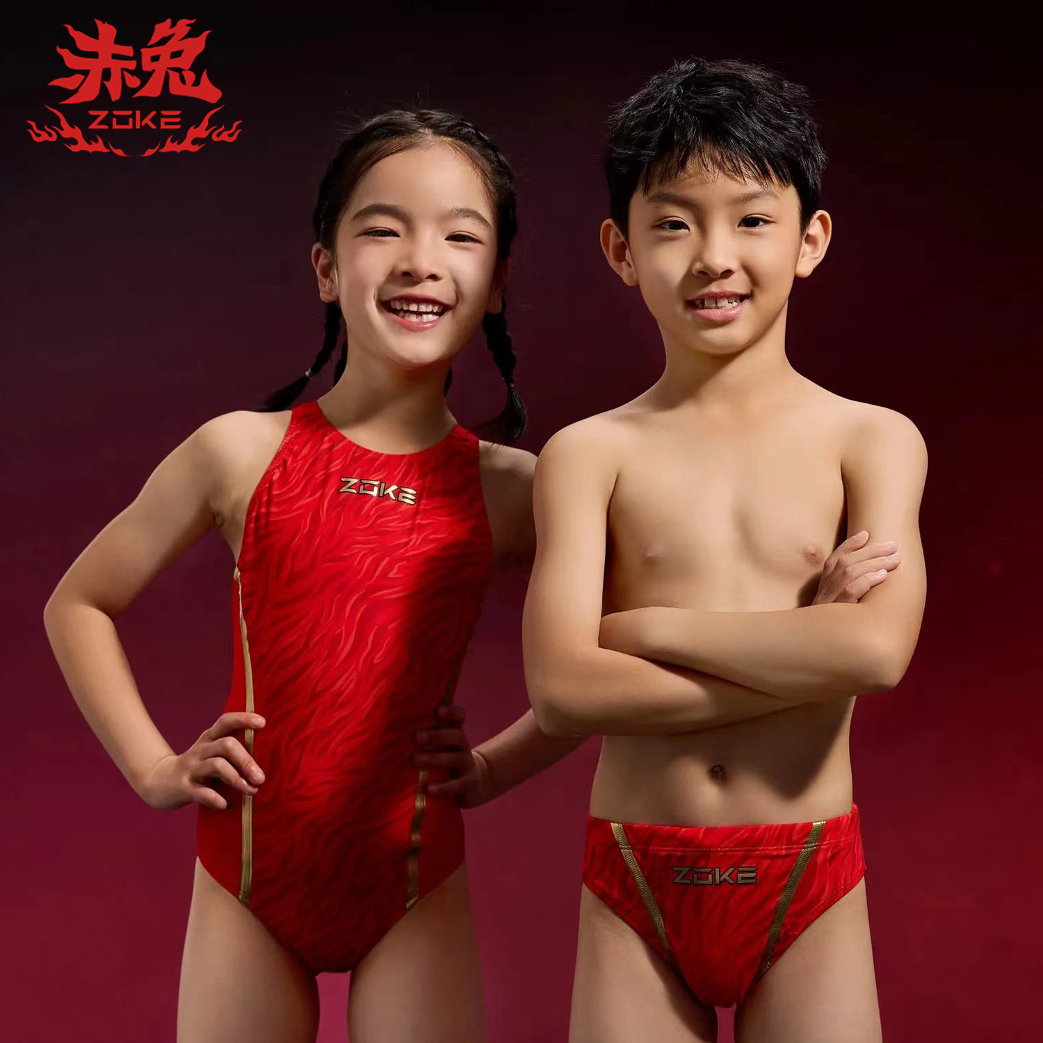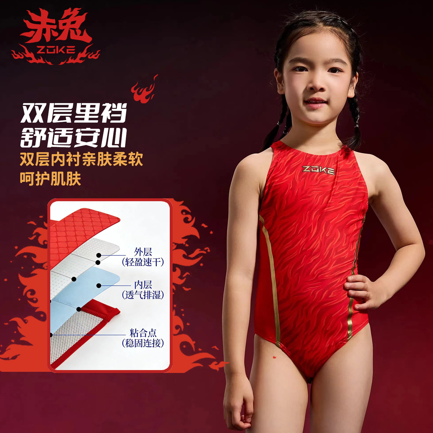 zoke洲克儿童泳衣女孩童连体三角泳衣赤兔系列专业竞速干比赛泳装