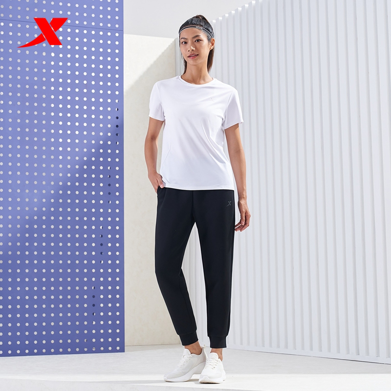 特步女时尚百搭束脚九分裤新款休闲运动针织裤子夏季透气女裤