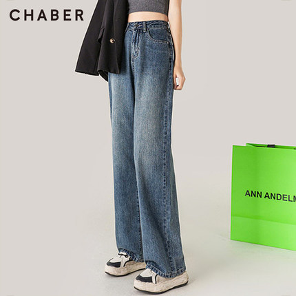 CHABER复古高腰阔腿牛仔裤女宽松直筒拖地长裤小个子显瘦