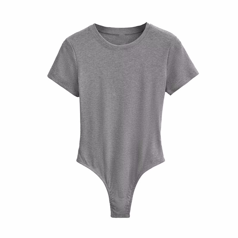 欧美风修身新品连体女T恤基础款圆领短袖弹力连裆连身ins薄打底衫