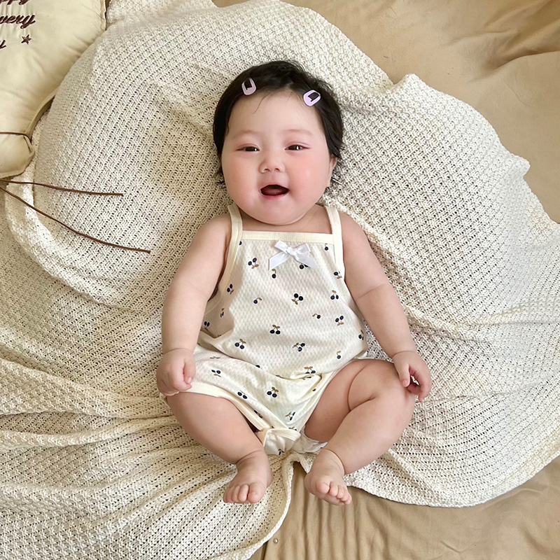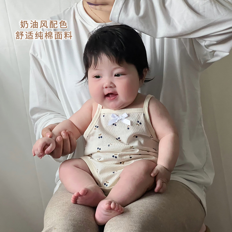 男童婴儿纯棉吊带包屁衣宝宝女童夏装薄款无袖爬服新生0-2岁外穿