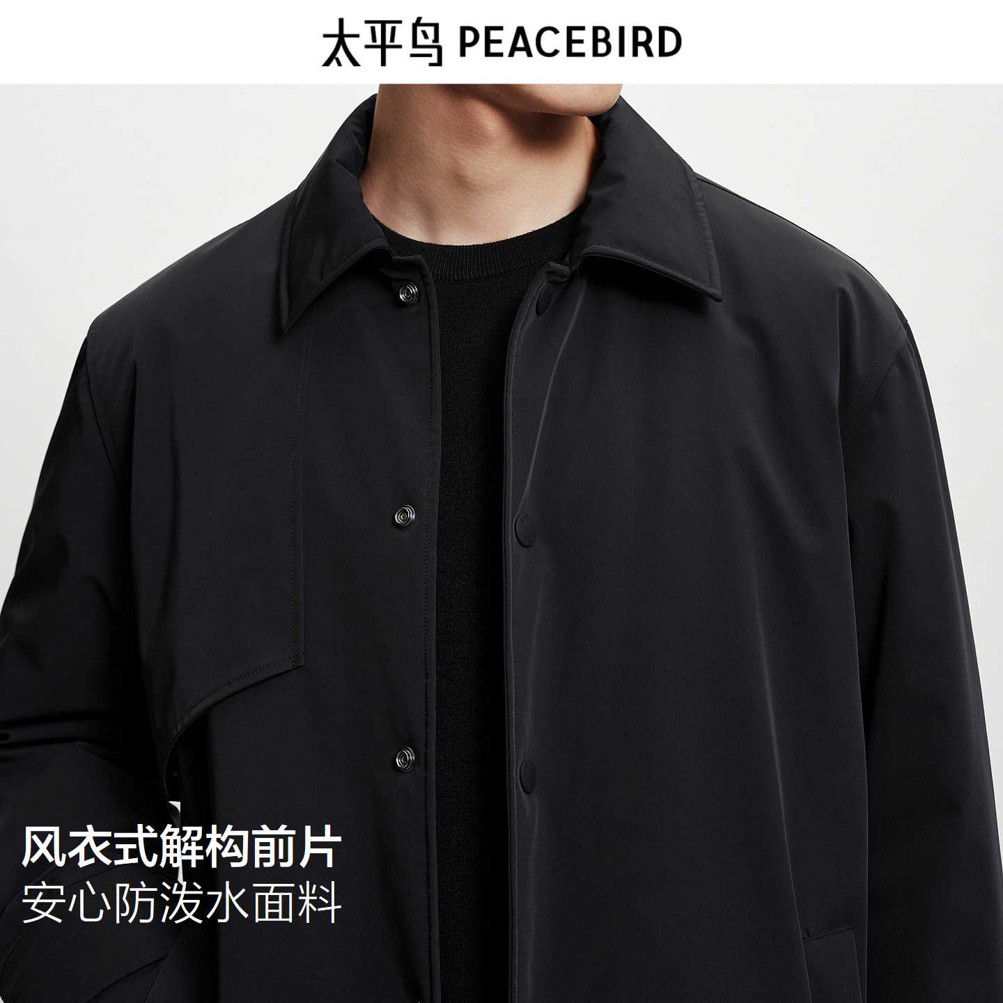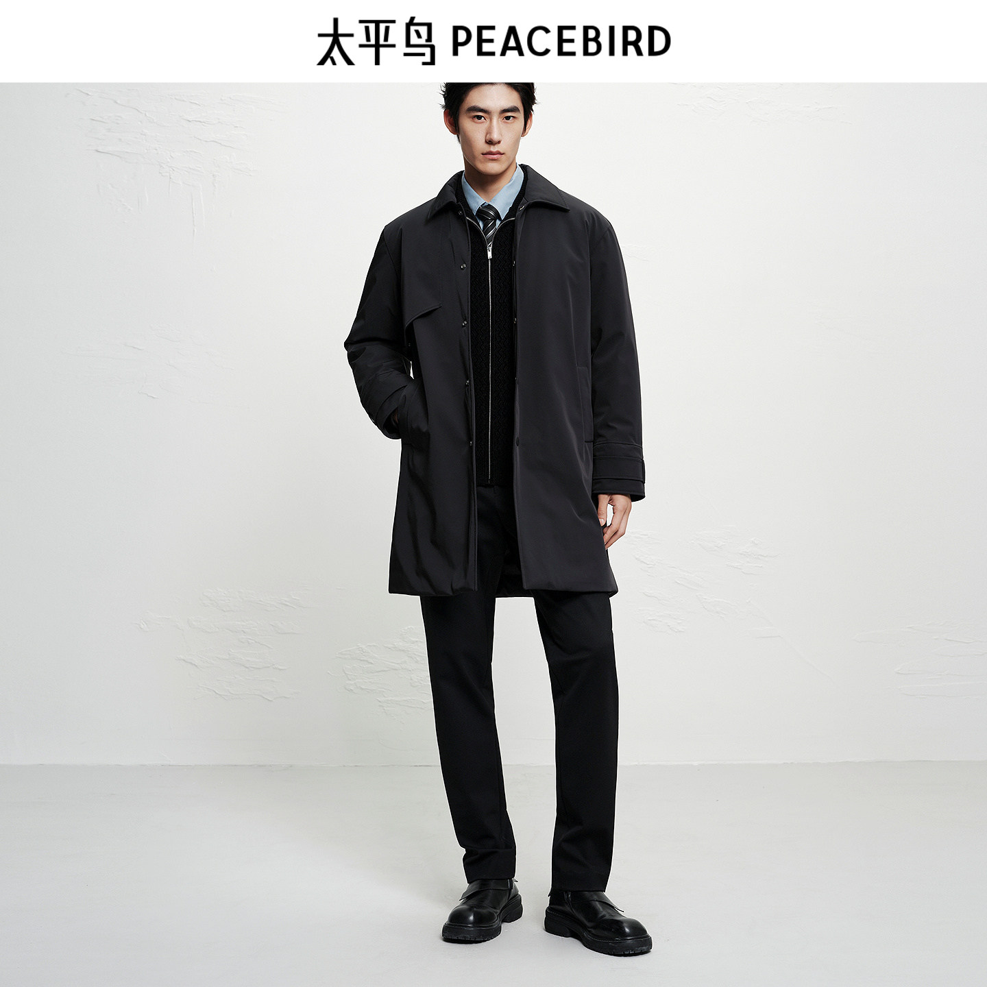 【防泼水】太平鸟男装25年冬季新款中长款羽绒服风衣简约行政风