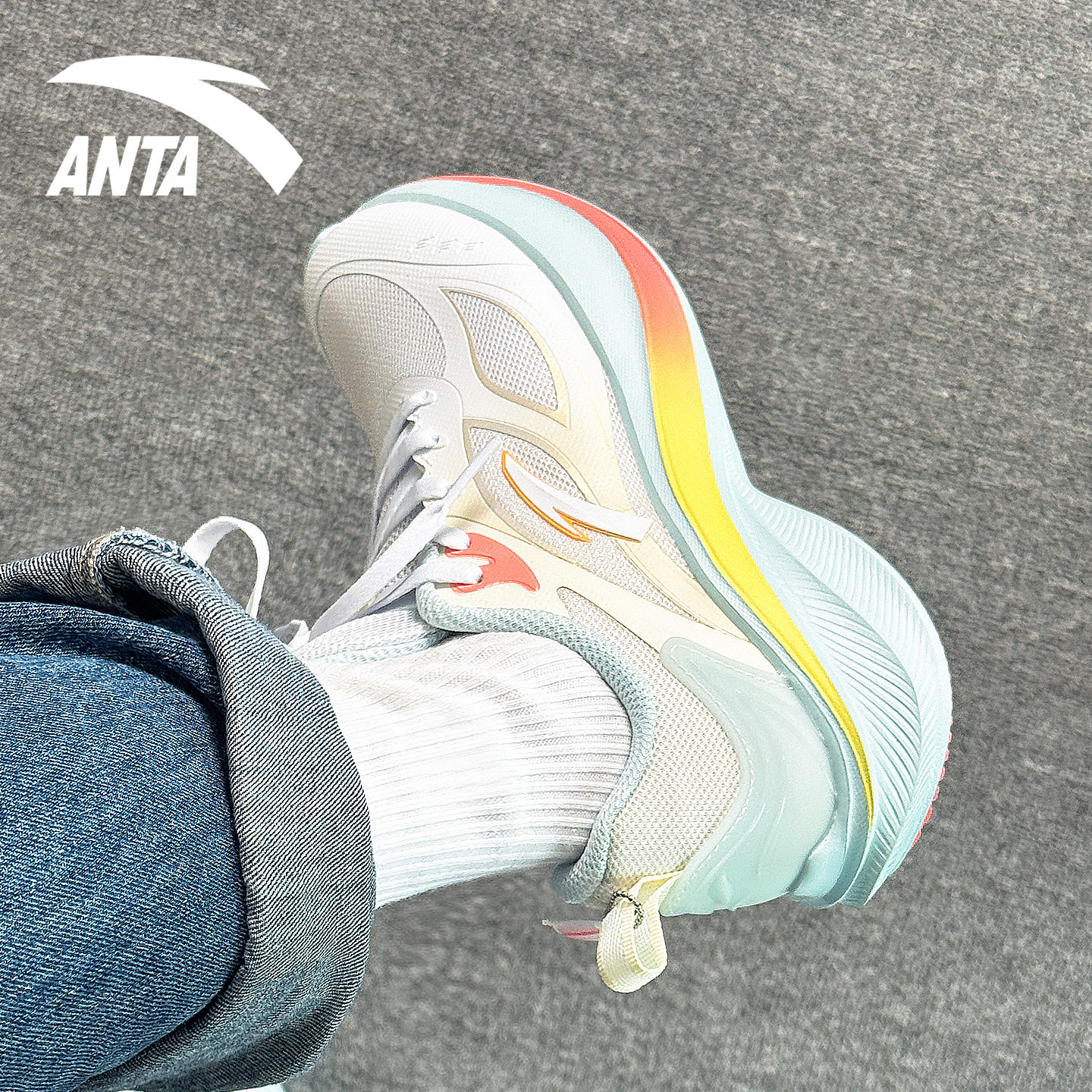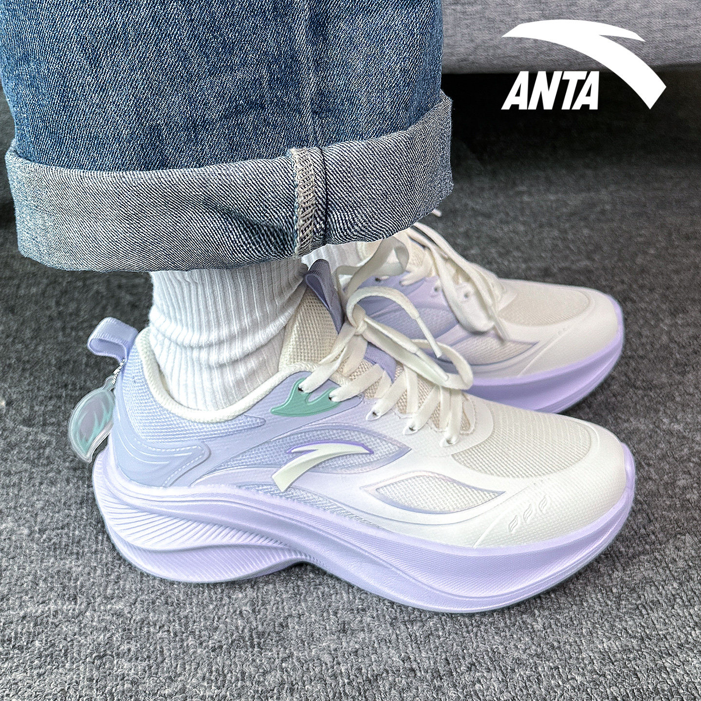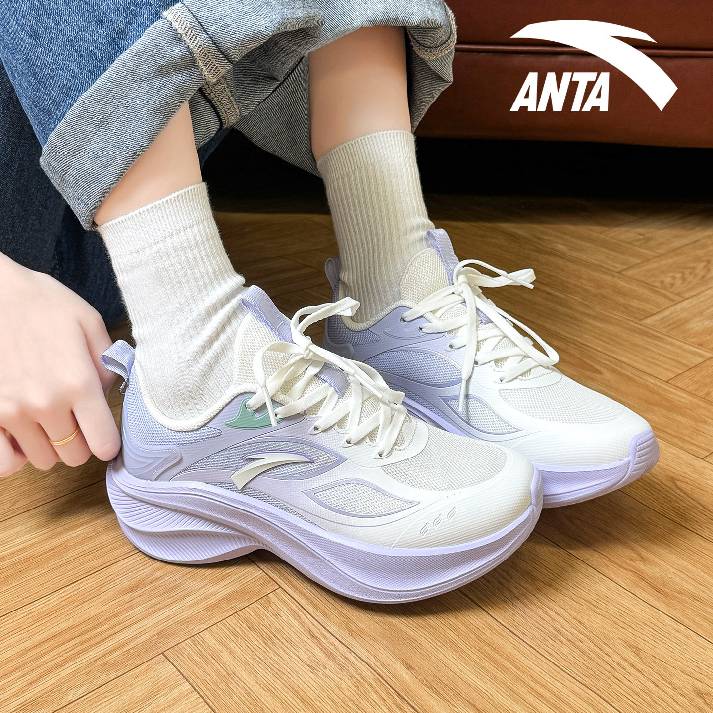安踏女鞋小学生跑步鞋轻便减震羽毛球鞋子舒适回弹小码跳绳运动鞋