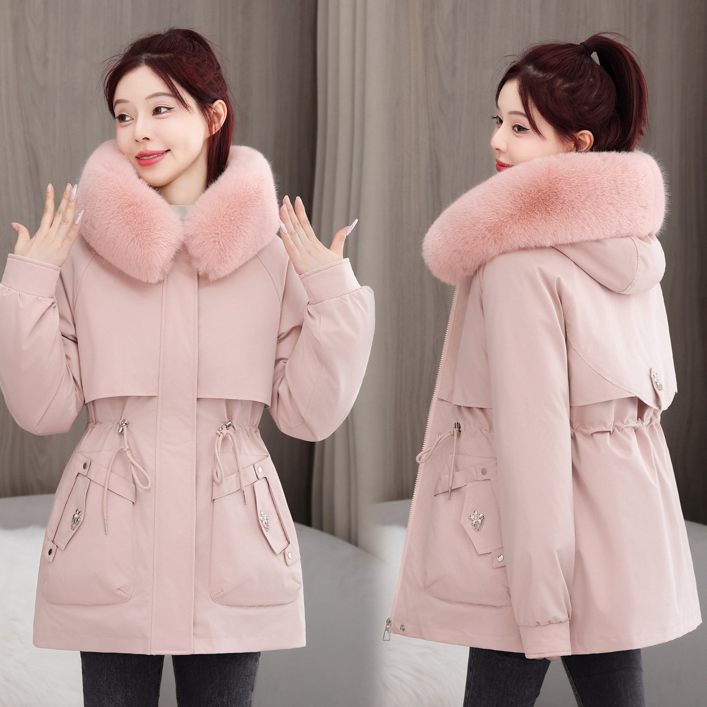 2025冬季新款羽绒棉服女内胆可拆卸加厚派克棉衣时尚保暖棉袄外套