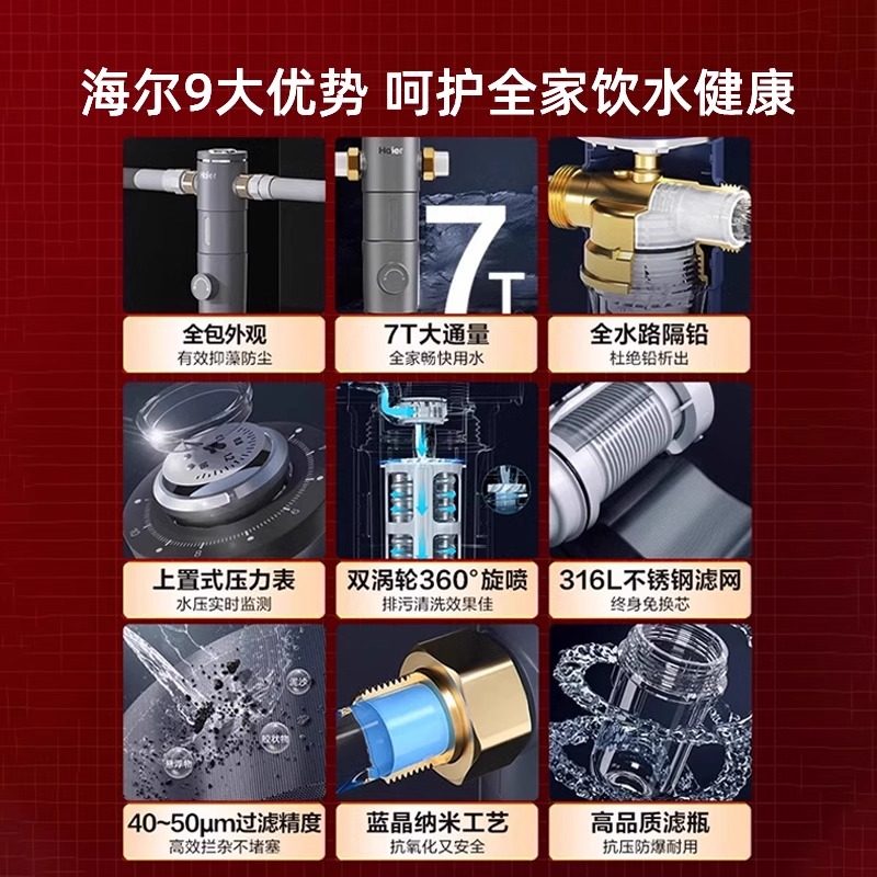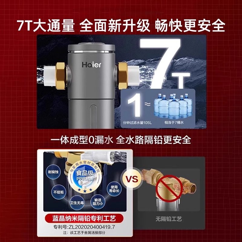 海尔前置过滤器家用反冲洗全屋自来水滤水器8T中央净水机HP-37