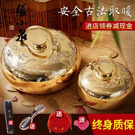 汤婆子张小泉纯黄铜制老式婆婆烫捂手壶加厚女暖手宝冲注水热水袋