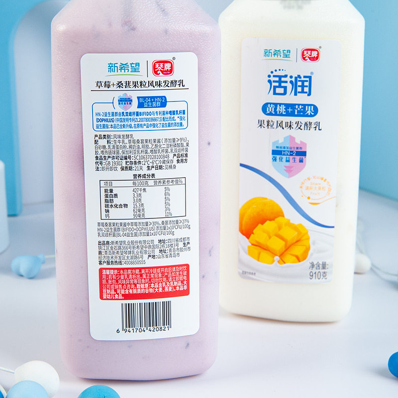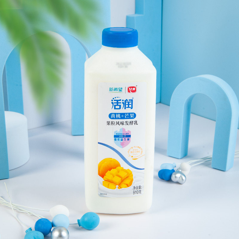 新希望琴牌活润910g*1/2桶装草莓黄桃芒果低温风味酸牛奶大果粒