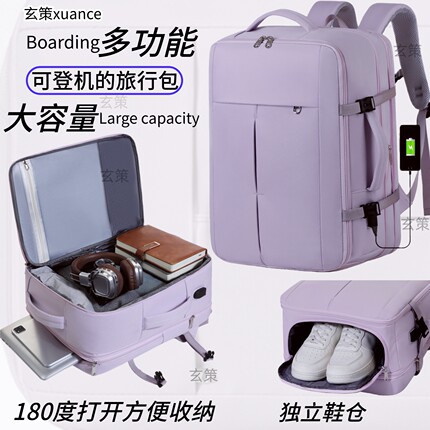 双肩包男士可扩容行李包大容量学生书包女出差电脑包短途旅游背包